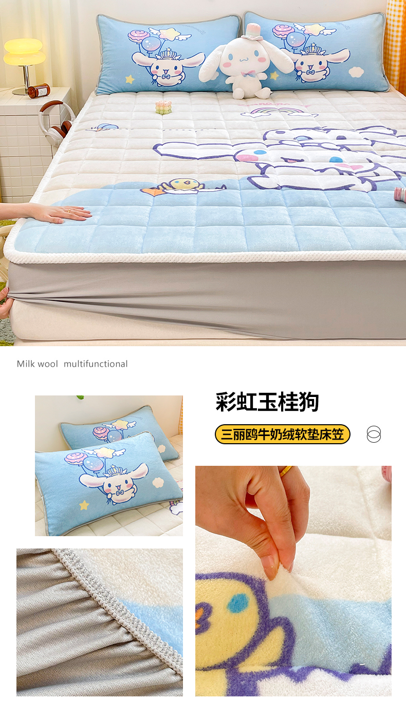 商品名称:米帛家纺 2024新款三丽鸥印花牛奶绒床笠 彩虹玉桂狗