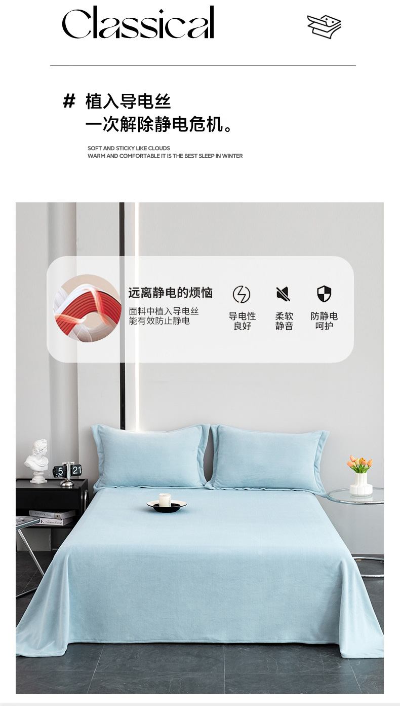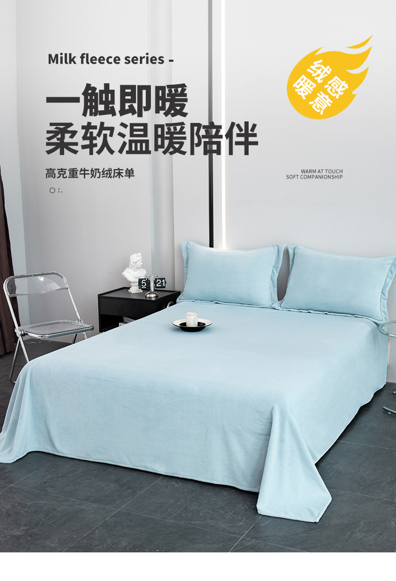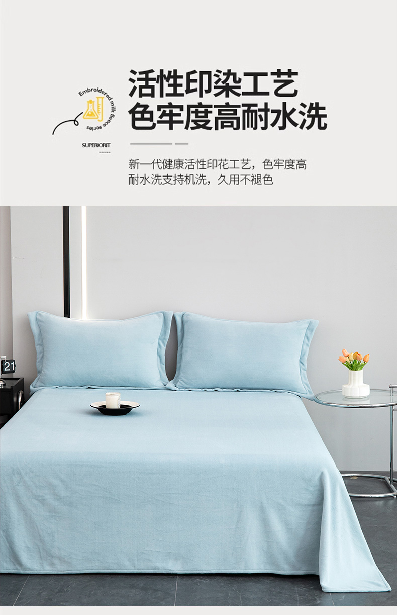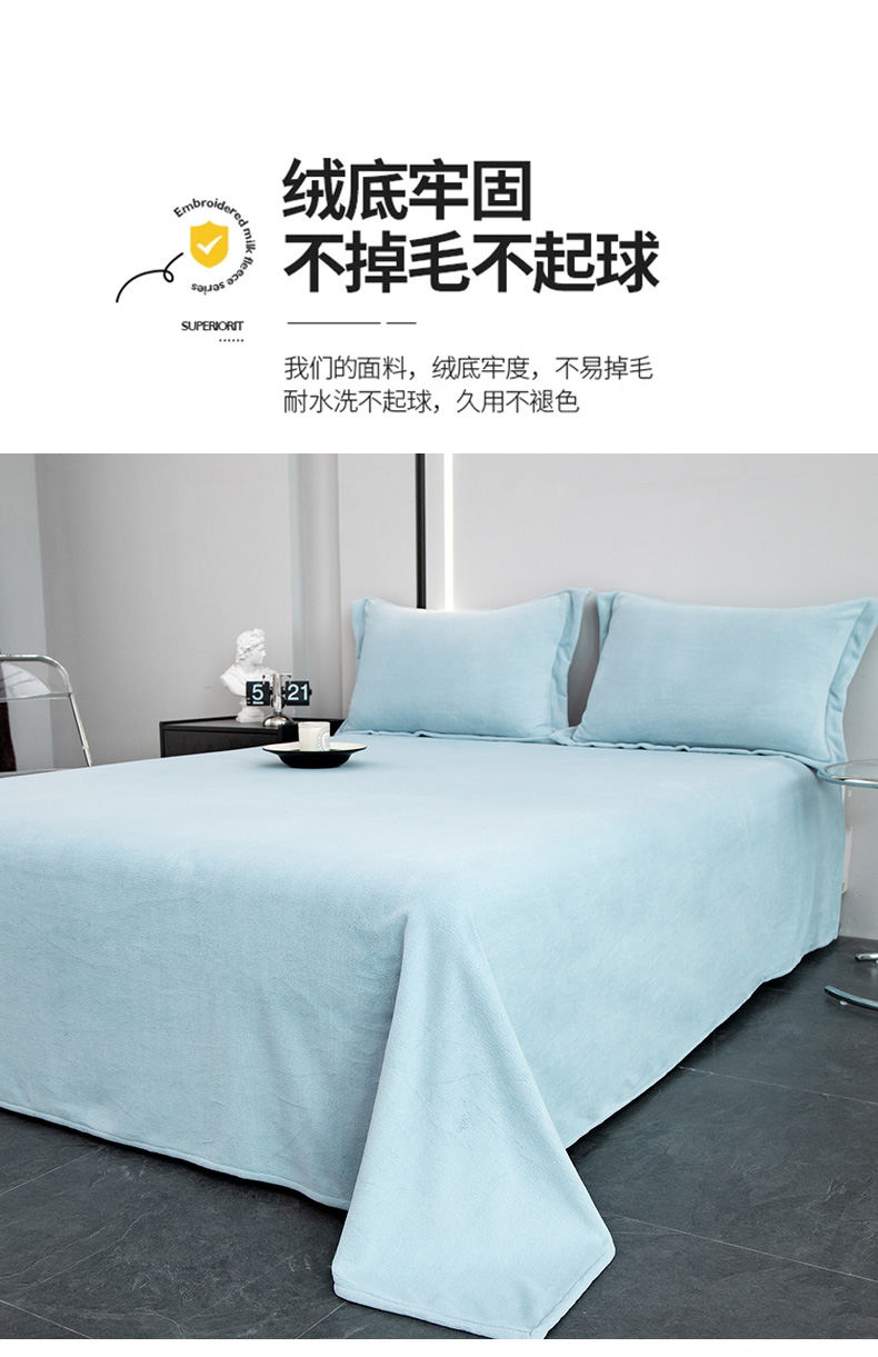 商品名称:锦罗绣 2024新款230克纯色牛奶绒单床单 水蓝-