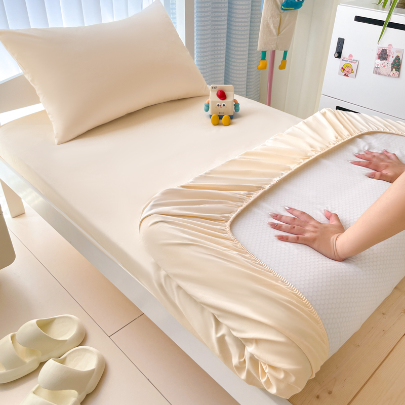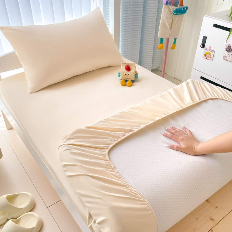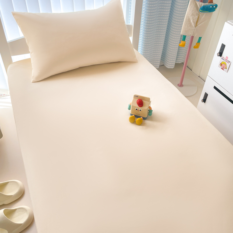 商品名称:老帅的工厂店 2025新款亲肤磨毛防水纯色学生床笠-小床图 本色