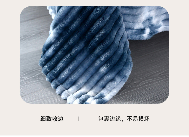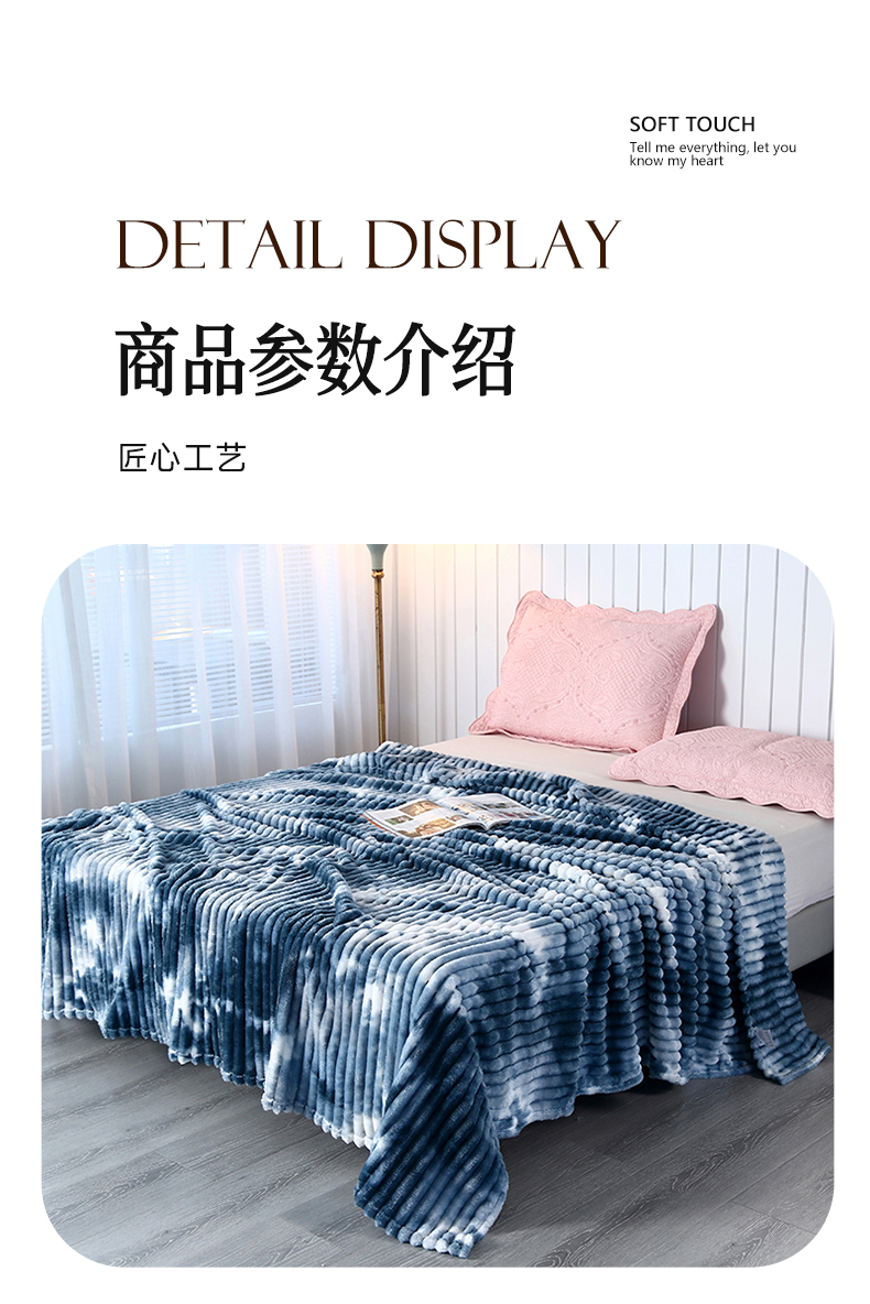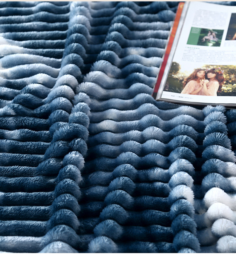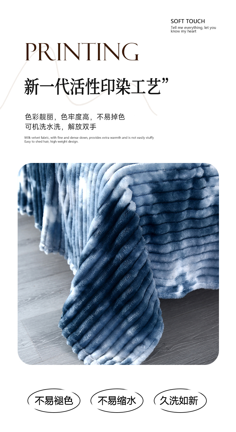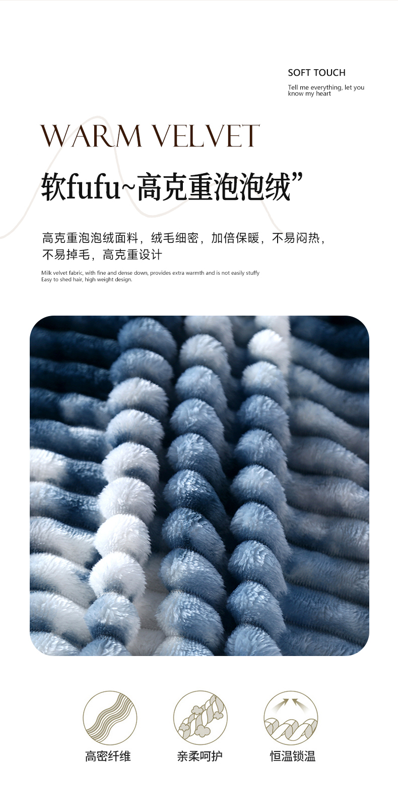 商品名称:美洲琳 2025新款仿兔毛大泡泡抽条印花毛毯 抽条蓝