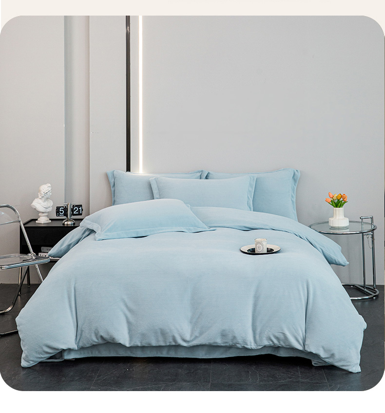 当前位置: 91家纺网 > 商品网购 > 床品套件 > 四件套 > 牛奶绒四件套 > 锦罗绣 2024新款230克纯色牛奶绒四件套 水蓝