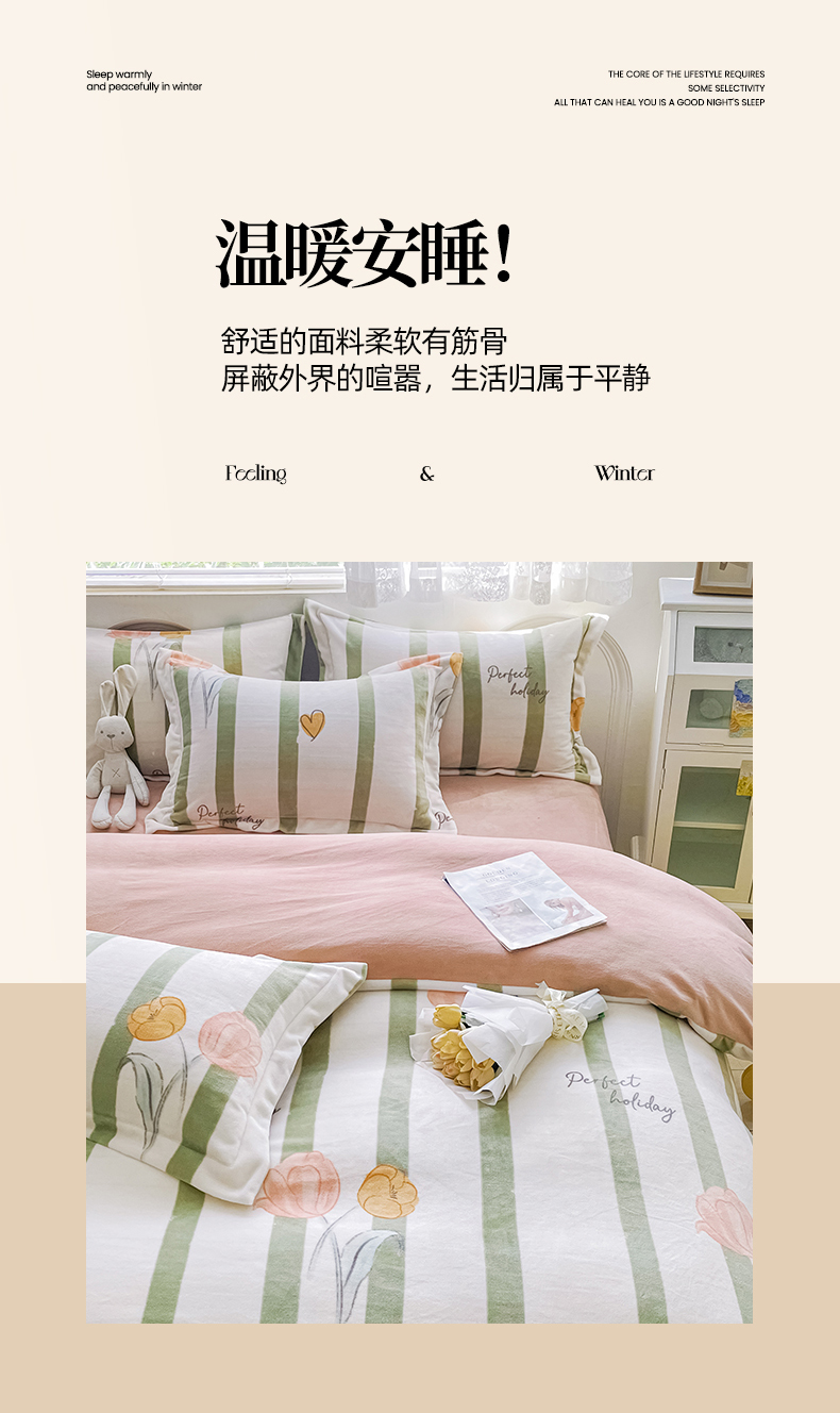 • 91家纺网 家纺一手货源 找家纺 锦罗绣 2024新款A类高克重牛奶绒印花单被套 一路有你