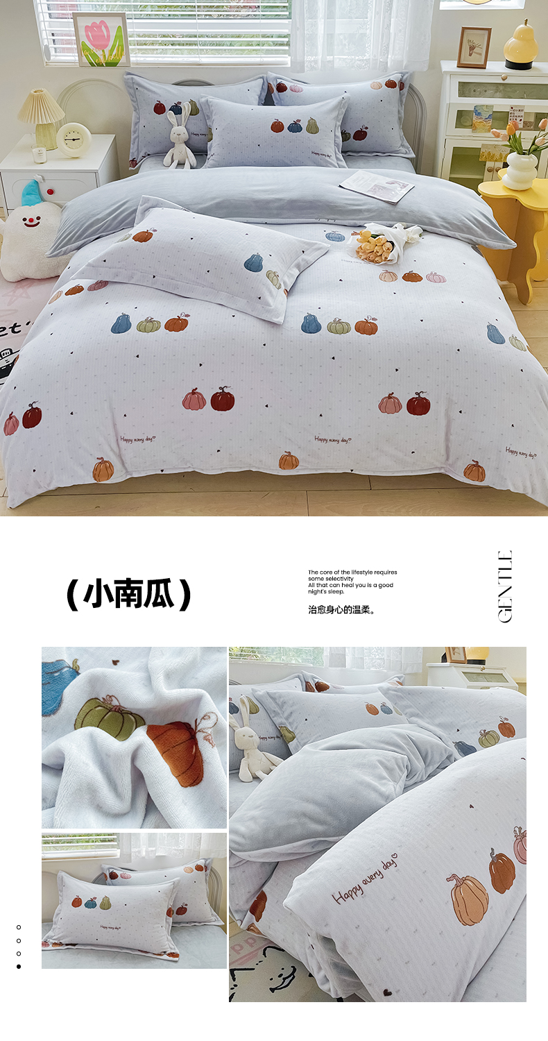 当前位置: 91家纺网 > 商品网购 > 床品套件 > 四件套 > 牛奶绒四件套 > 锦罗绣 2024新款A类高克重牛奶绒印花四件套 小南瓜