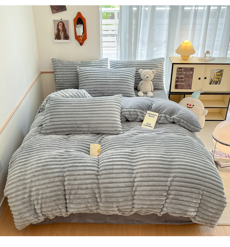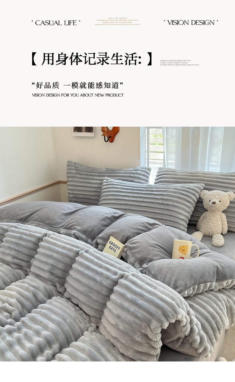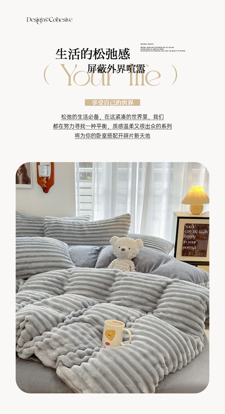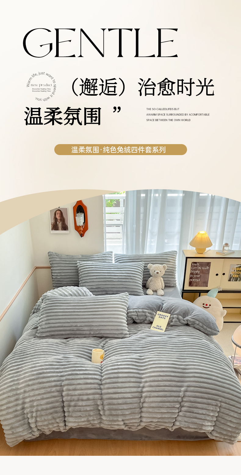 商品名称:川悦生活 2024新款牛奶绒兔绒四件套-随风生活 随风生活-银灰