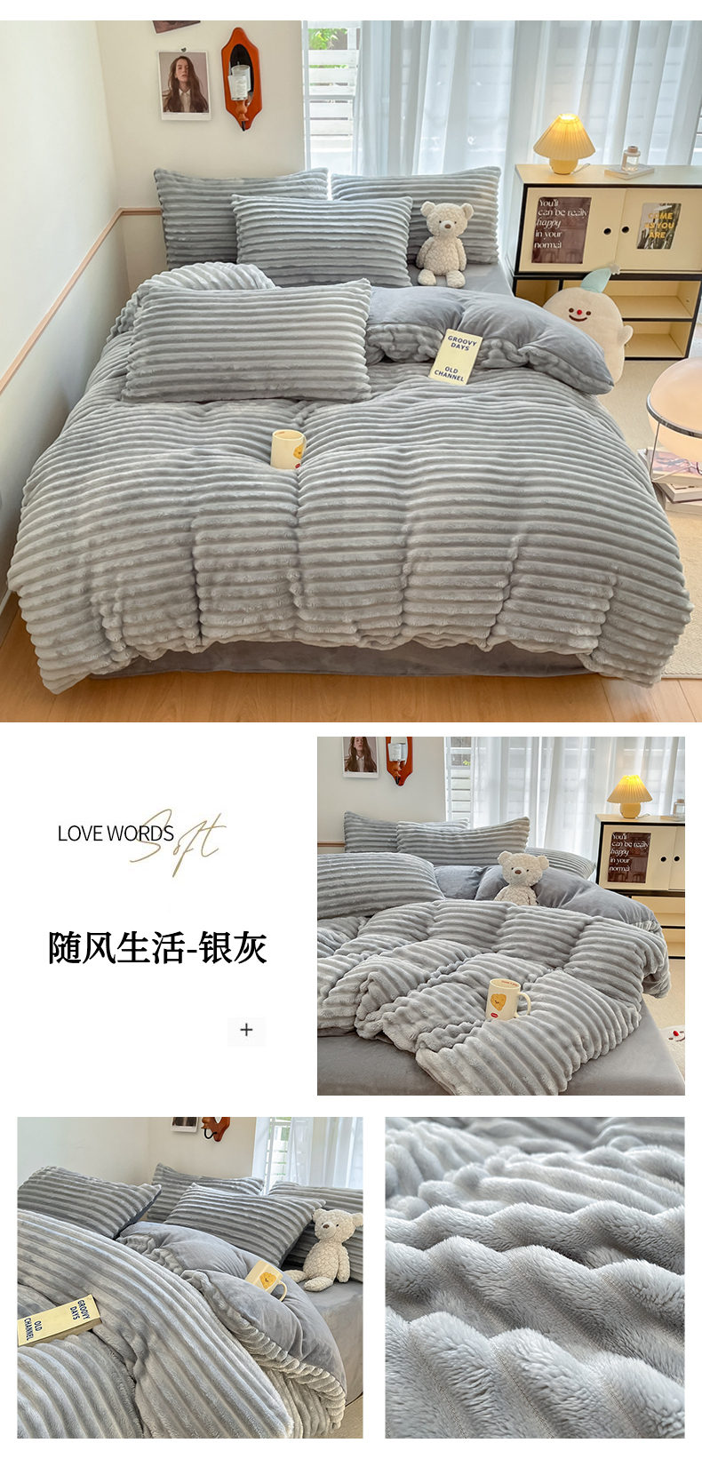 川悦生活 2024新款牛奶绒兔绒四件套-随风生活 随风生活-银灰
