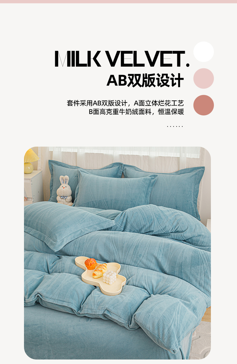 (总)锦罗绣 2025新款牛奶绒肌理纹四件套,肌理纹-灰,肌理纹-咖,肌理纹-蓝,肌理纹-绿,肌理纹-棕,艾草绿,繁星蓝,粉拼灰,米白拼灰,暖橘,浅灰