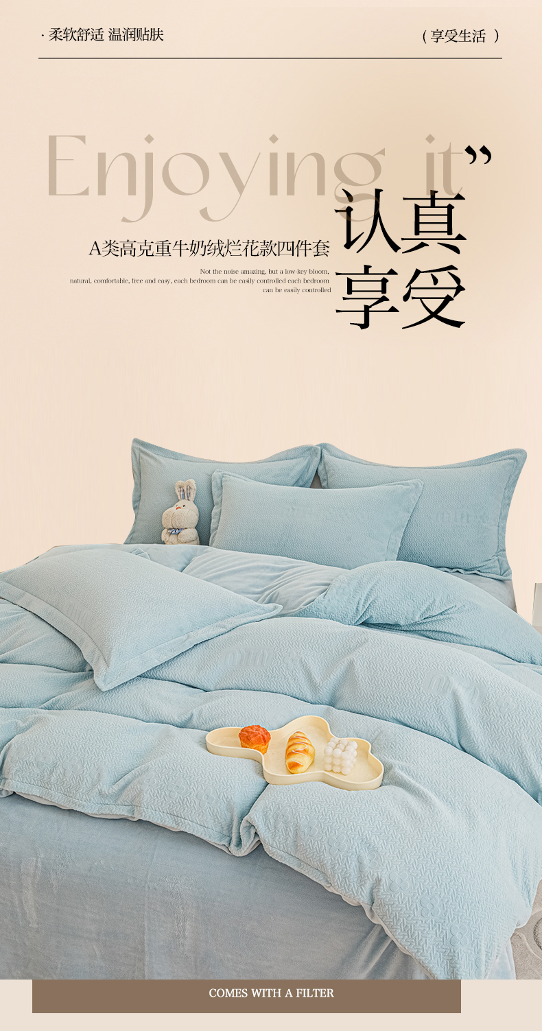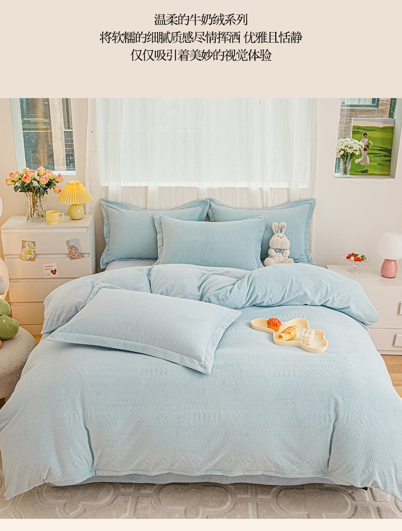 当前位置: 91家纺网 > 商品网购 > 床品套件 > 四件套 > 牛奶绒四件套 > 锦罗绣 2024新款全消光230克牛奶绒烂花绒提花四件套 mu-蓝