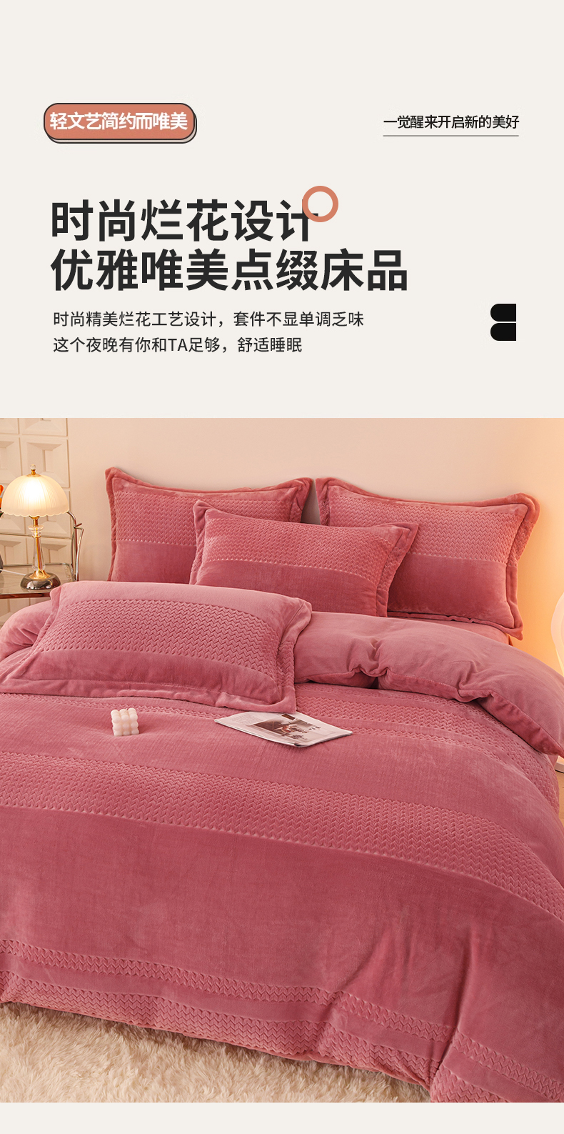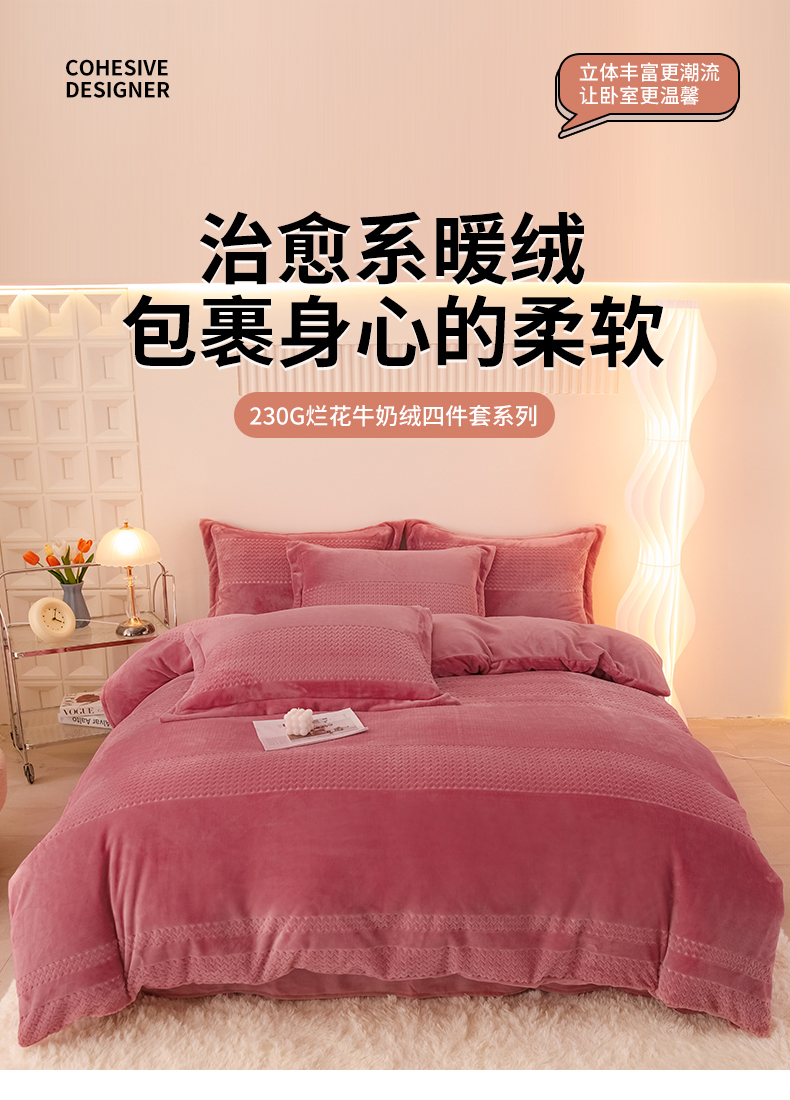 当前位置: 91家纺网 > 商品网购 > 床品套件 > 四件套 > 牛奶绒四件套 > 锦罗绣 2024新款全消光230克牛奶绒烂花绒提花四件套 提花-豆沙