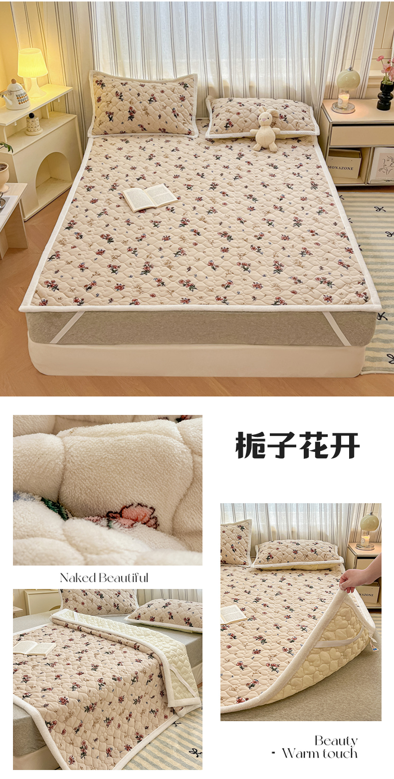 当前位置: 91家纺网 > 商品网购 > 床垫/床褥 > 普通床垫 > 启程家纺 2024新款A类印花牛奶绒床垫加厚绒保暖床护垫 栀子花开