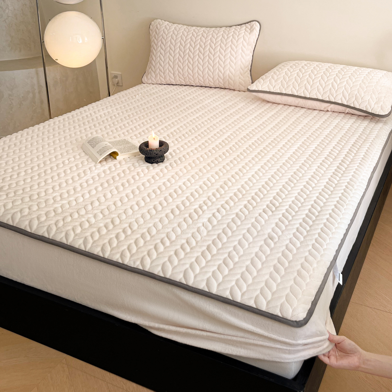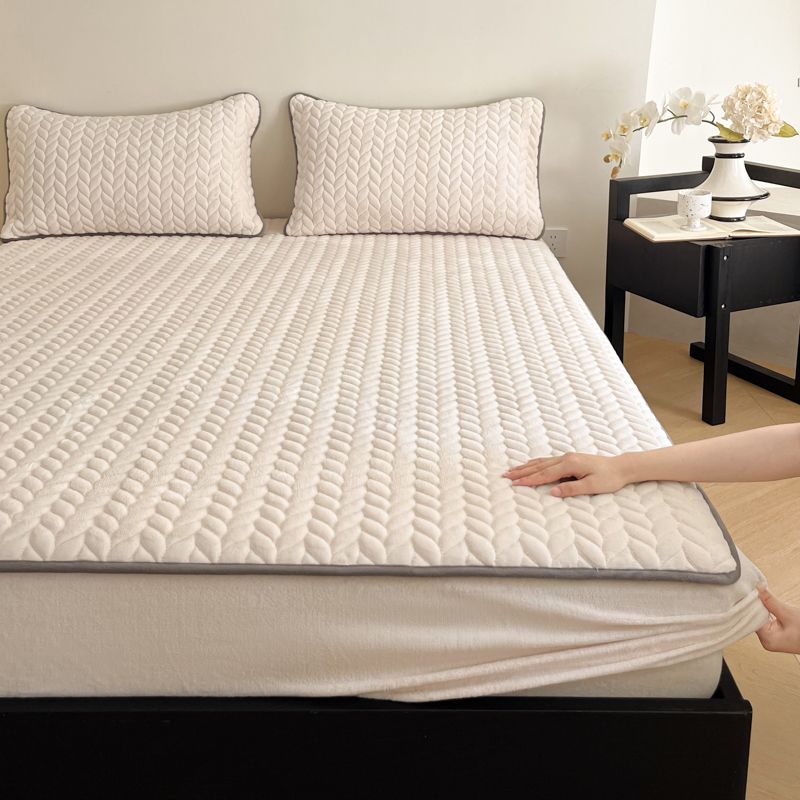 (总)欧邦 2025新款提花暖阳绒单床笠,苍穹蓝,初雪白,海棠粉,慕斯灰,青瓷绿,檀木咖