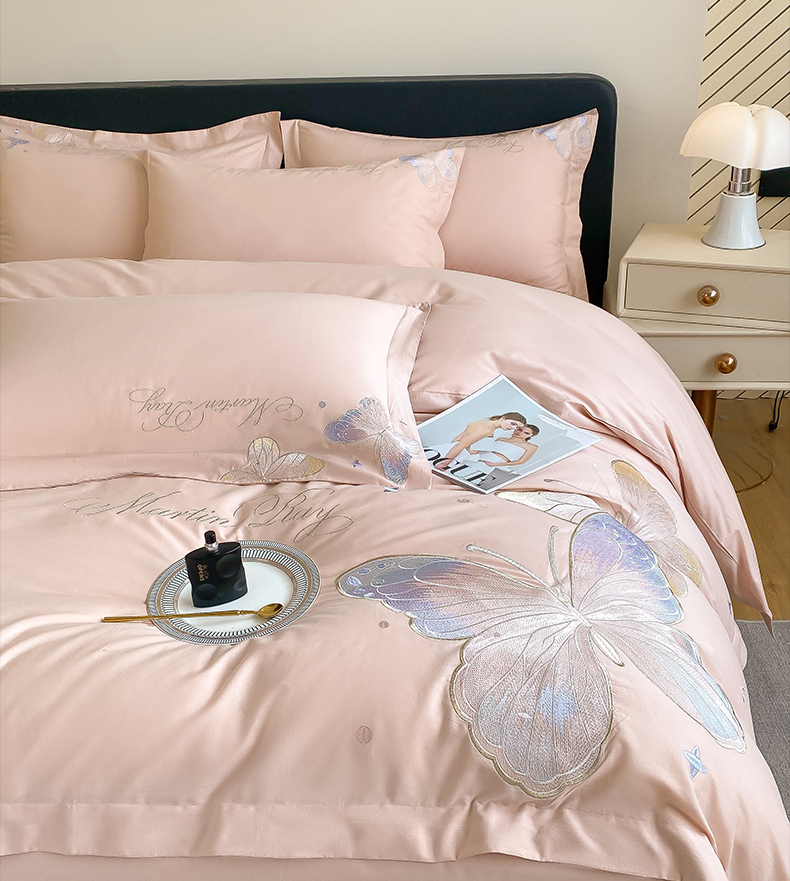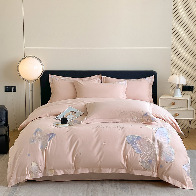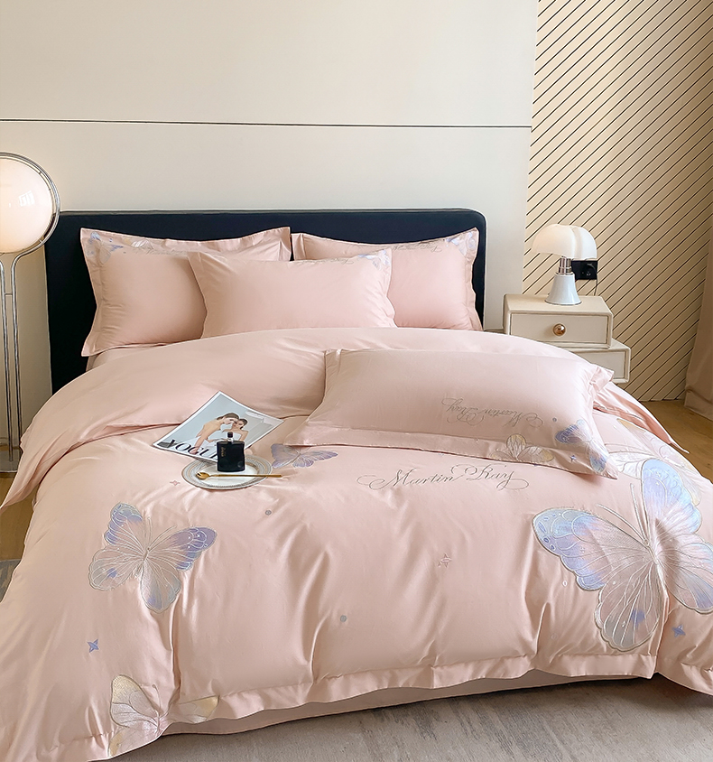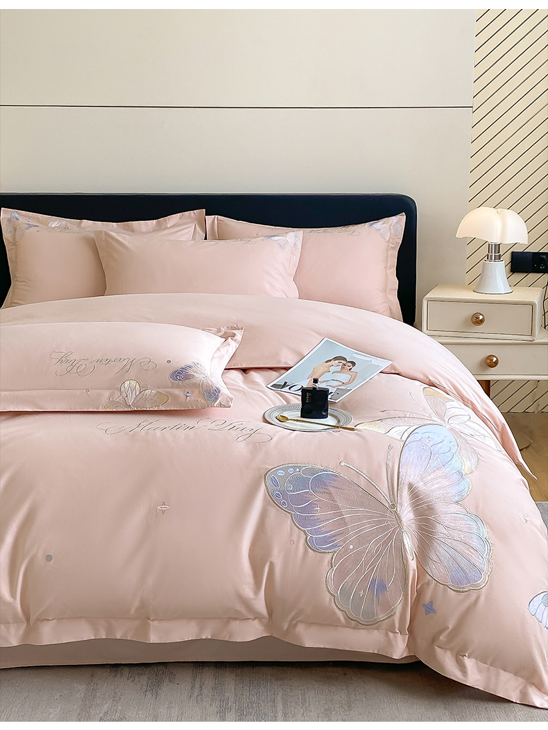 理想家家纺 2024新款13372全棉刺绣四件套系列-梦蝶 粉