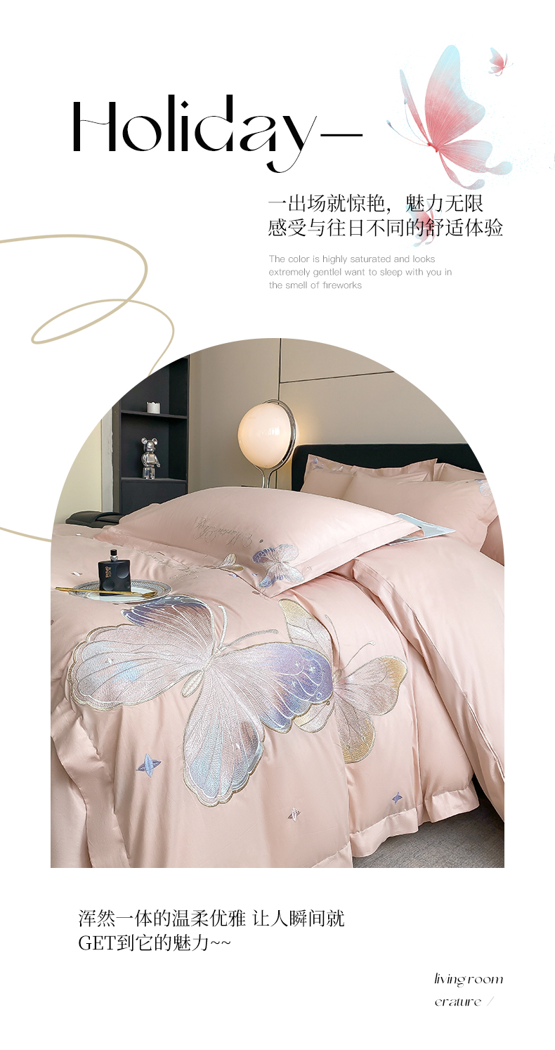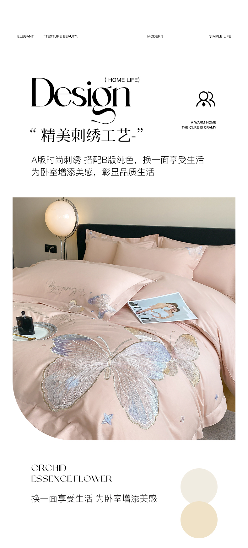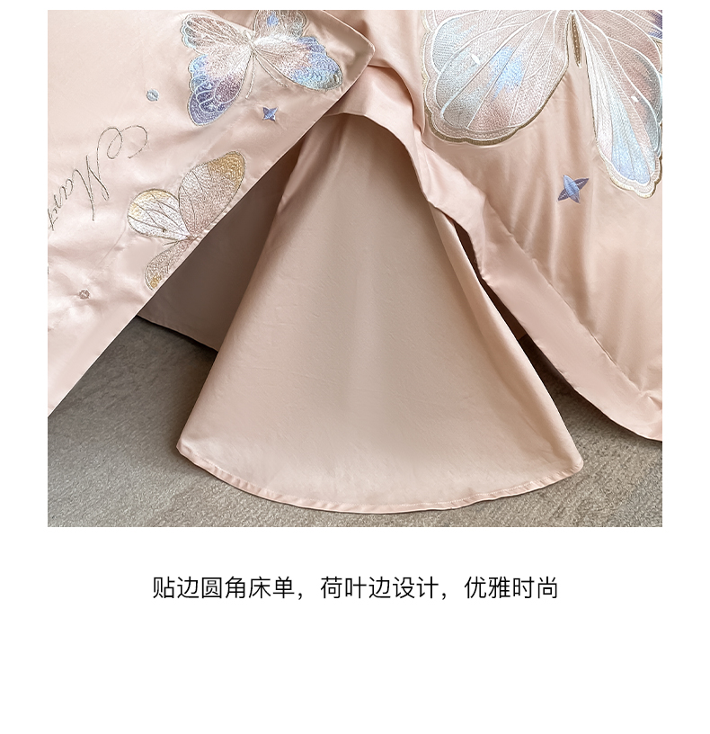 商品名称:理想家家纺 2024新款13372全棉刺绣四件套系列-梦蝶 粉