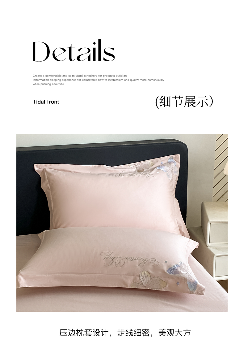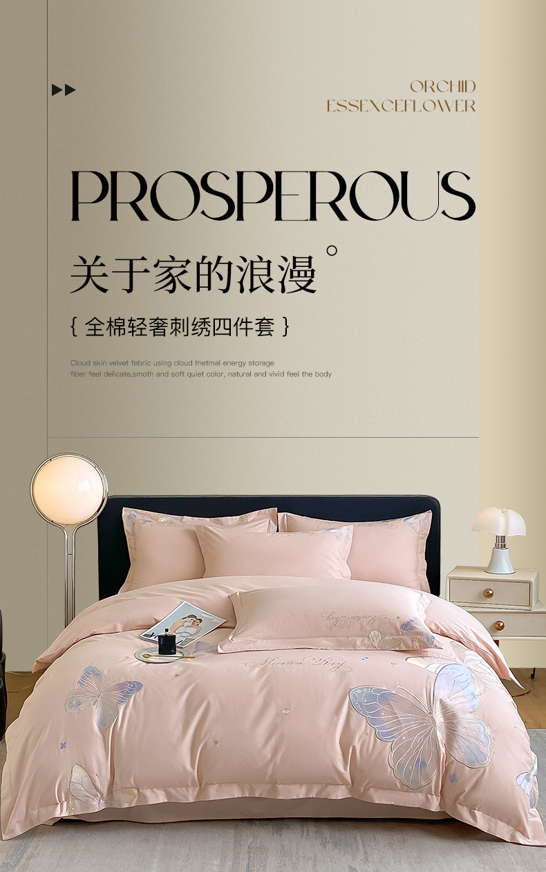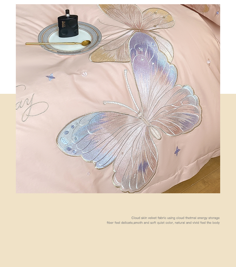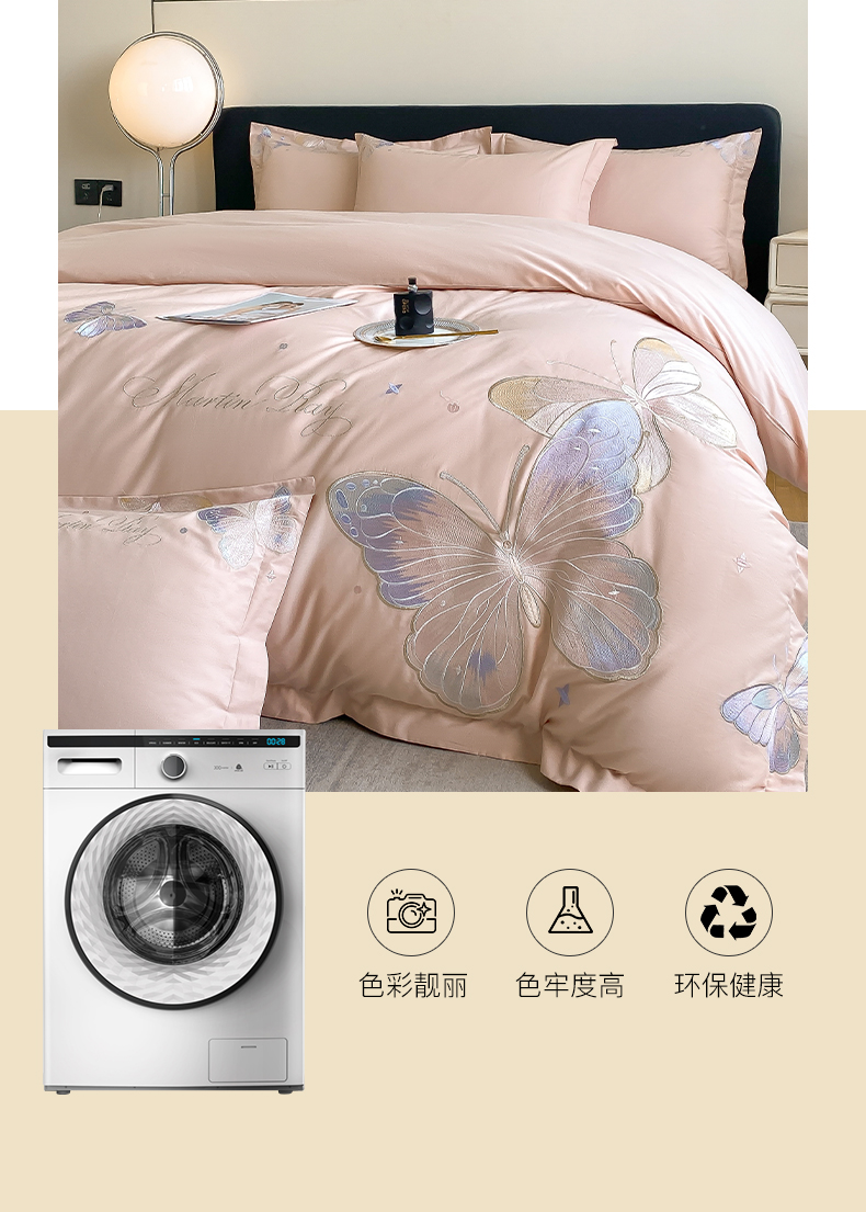 商品名称:理想家家纺 2024新款13372全棉刺绣四件套系列-梦蝶 粉