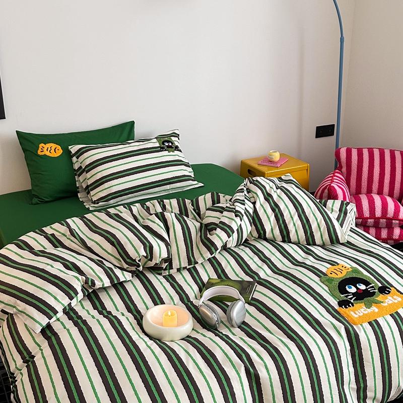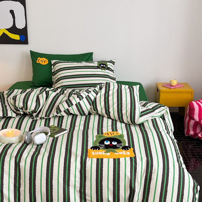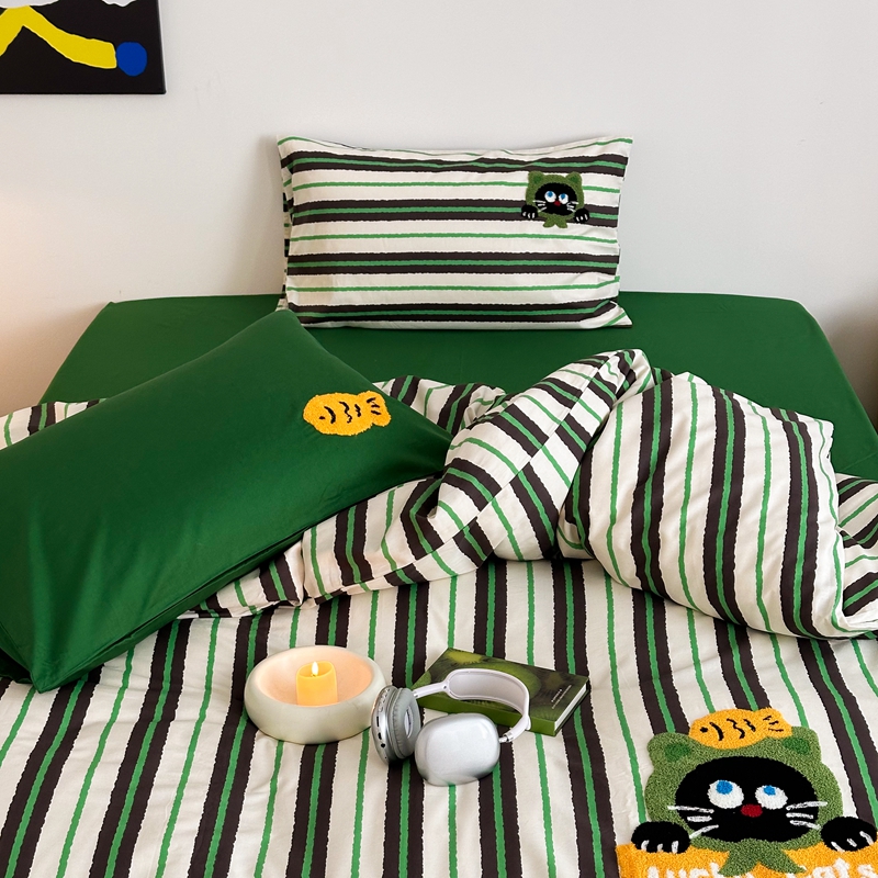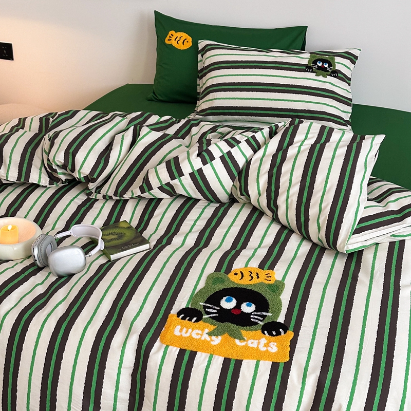 珺柔家纺 2024新款全棉印加毛巾绣四件套 贪吃小猫