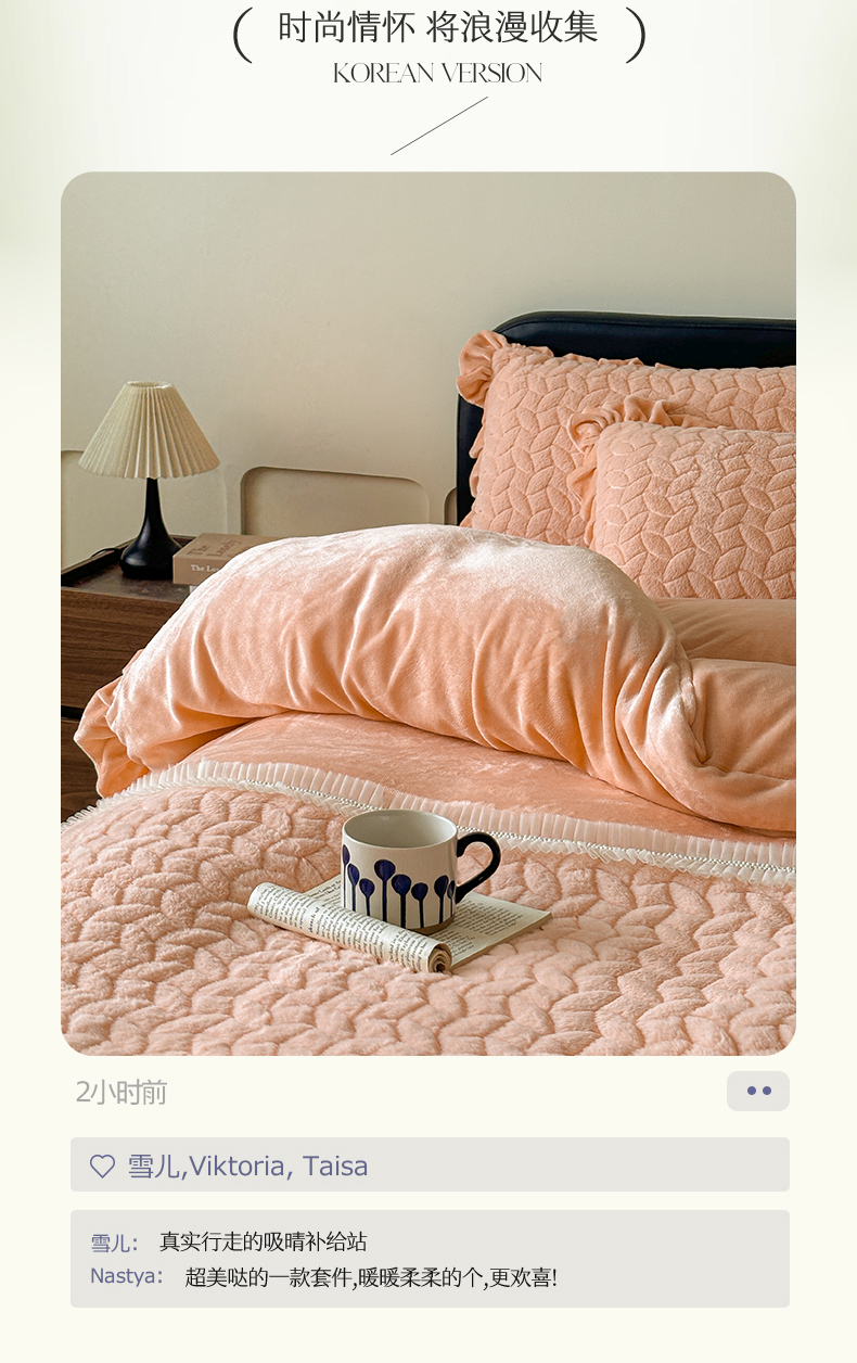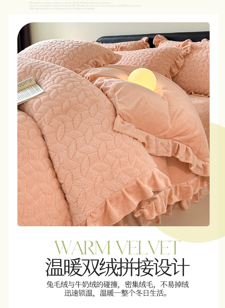 商品名称:2024秋冬新款韩版兔毛拼接四件套 美人玉