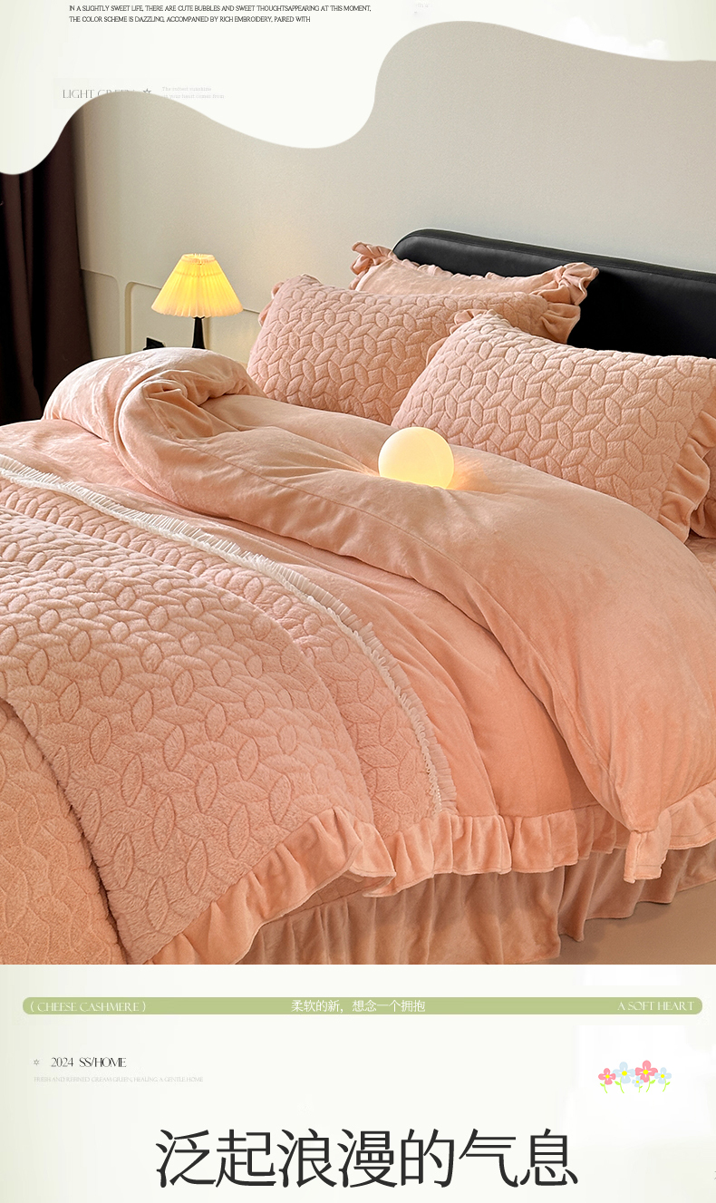(总)恒爱 2022秋冬水晶绒翩翩花舞夹棉床裙四件套,大红色,豆沙红,橄榄绿,公主粉,桔色,咖啡色,孔雀绿,拉菲红,罗兰紫,玫红色,美人玉,米白色,米驼色,抹茶绿,浅灰色,紫色