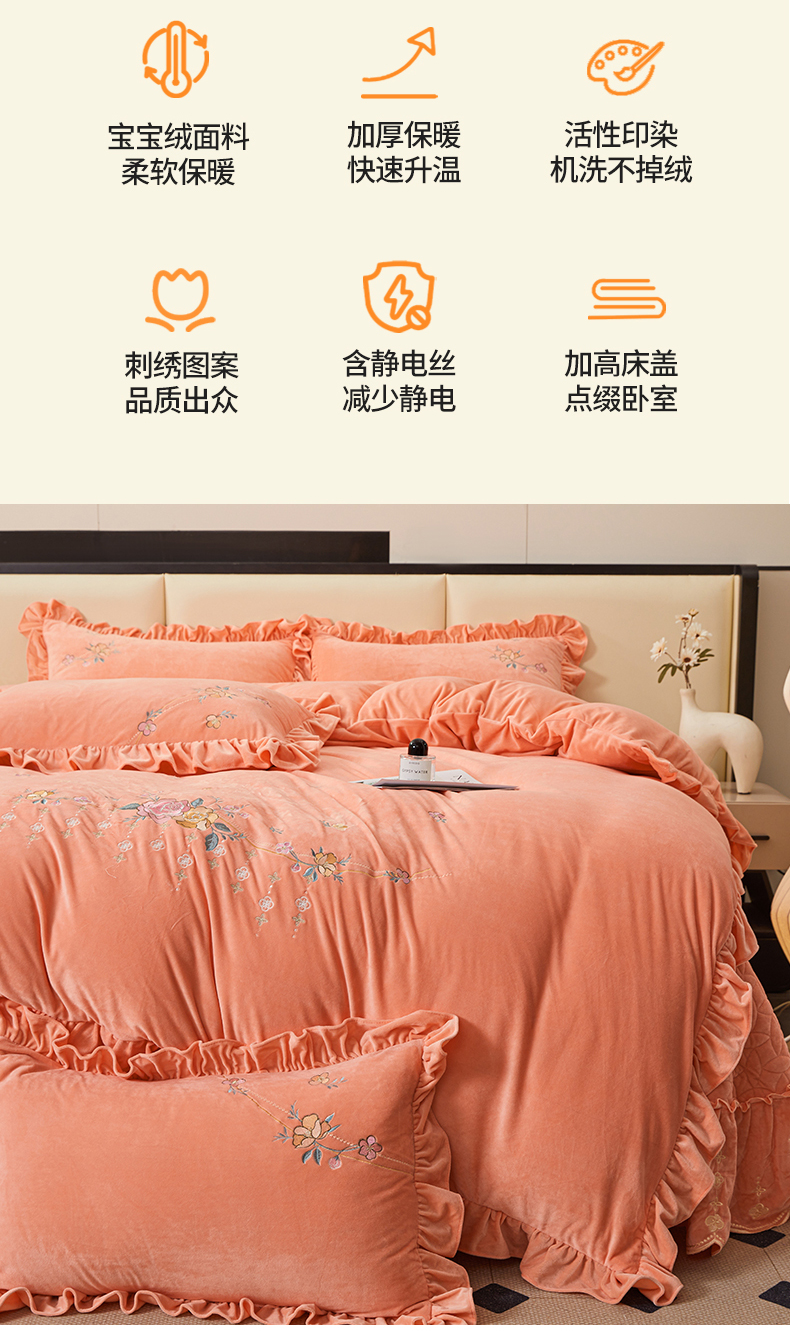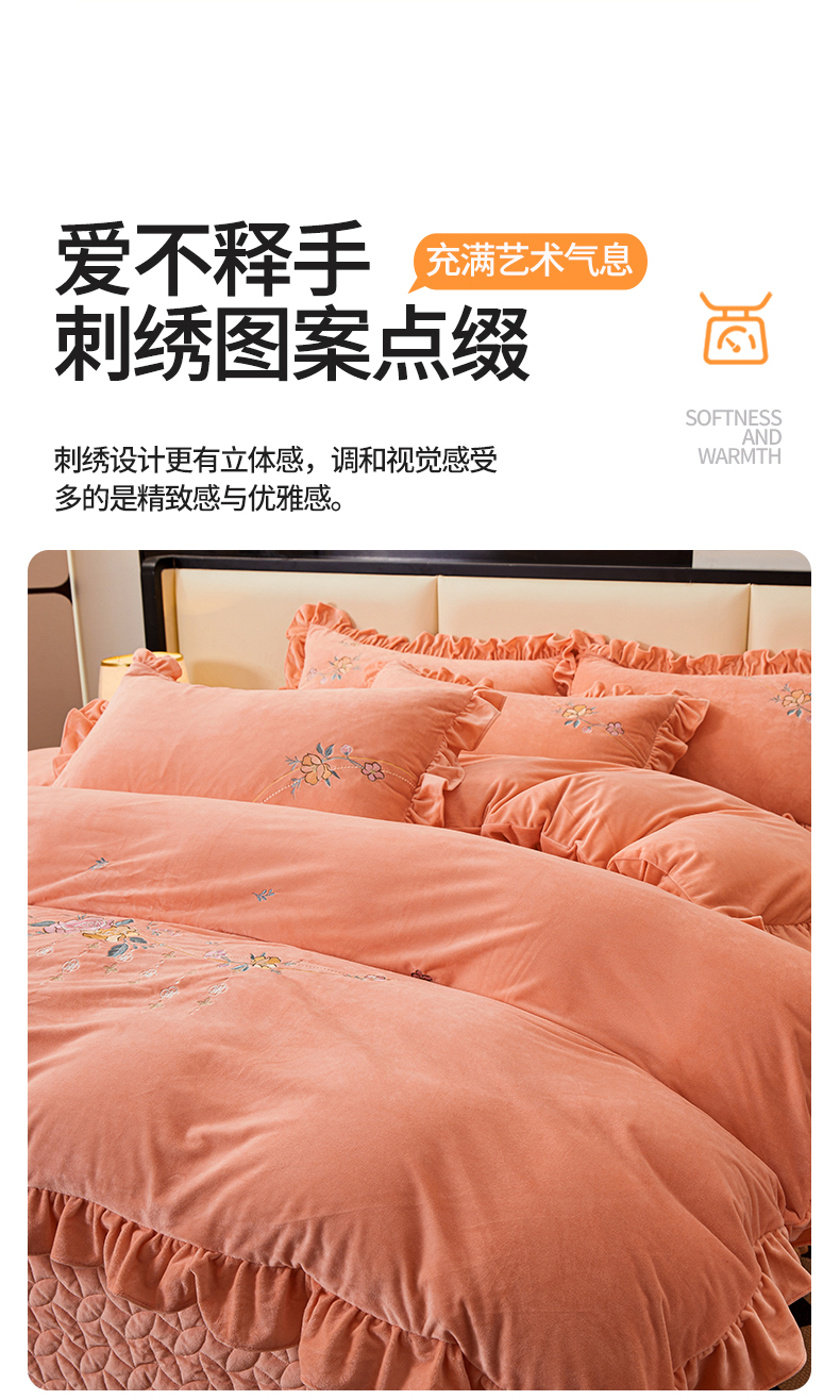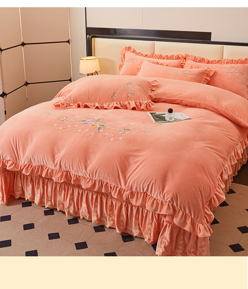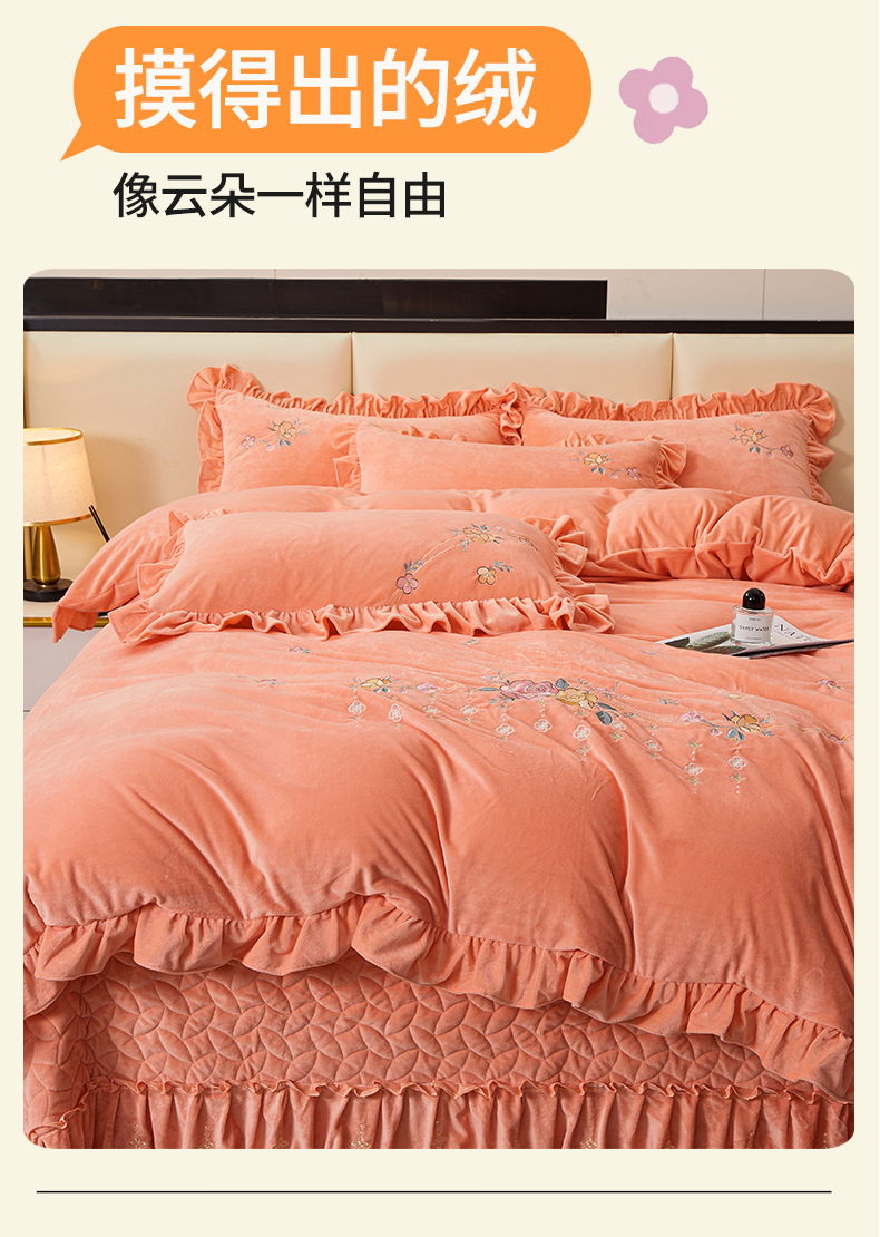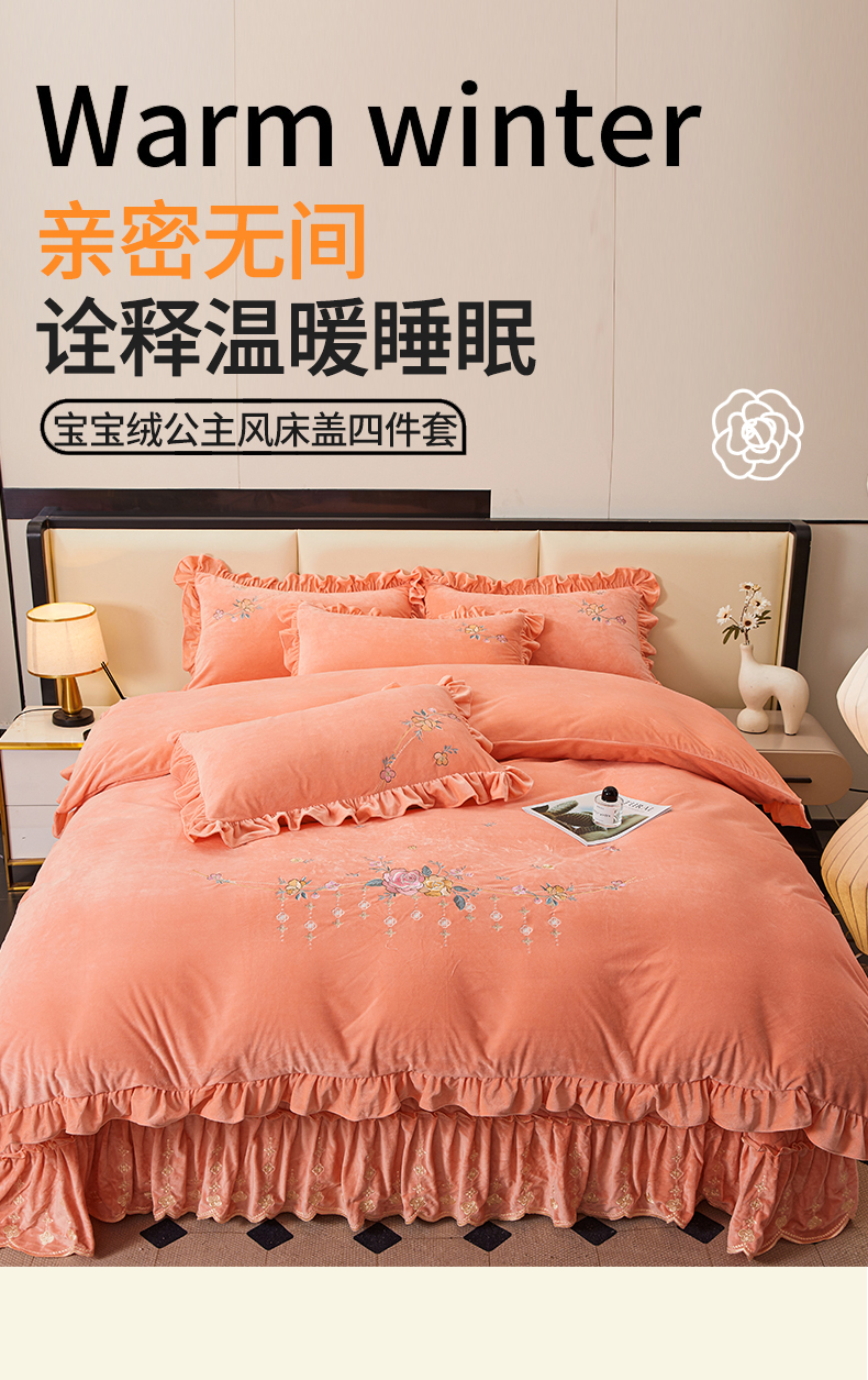 当前位置: 91家纺网 > 商品网购 > 床品套件 > 四件套 > 其它四件套 > 2024秋冬新款茉含宝宝绒公主风四件套 柔粉玉-