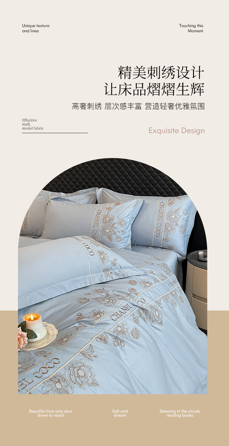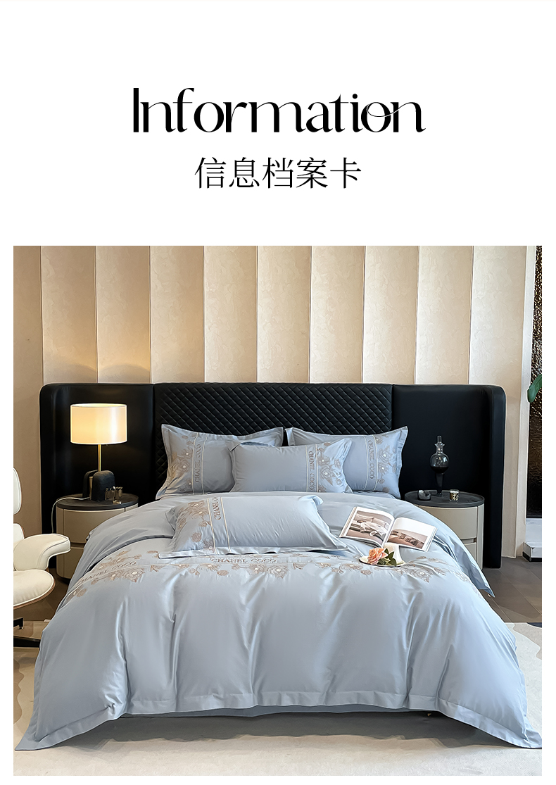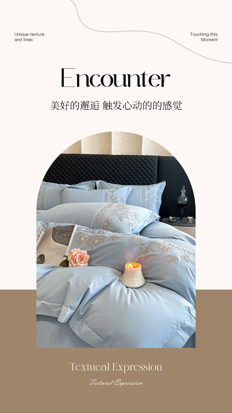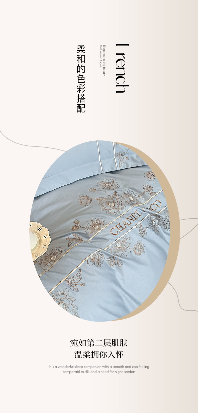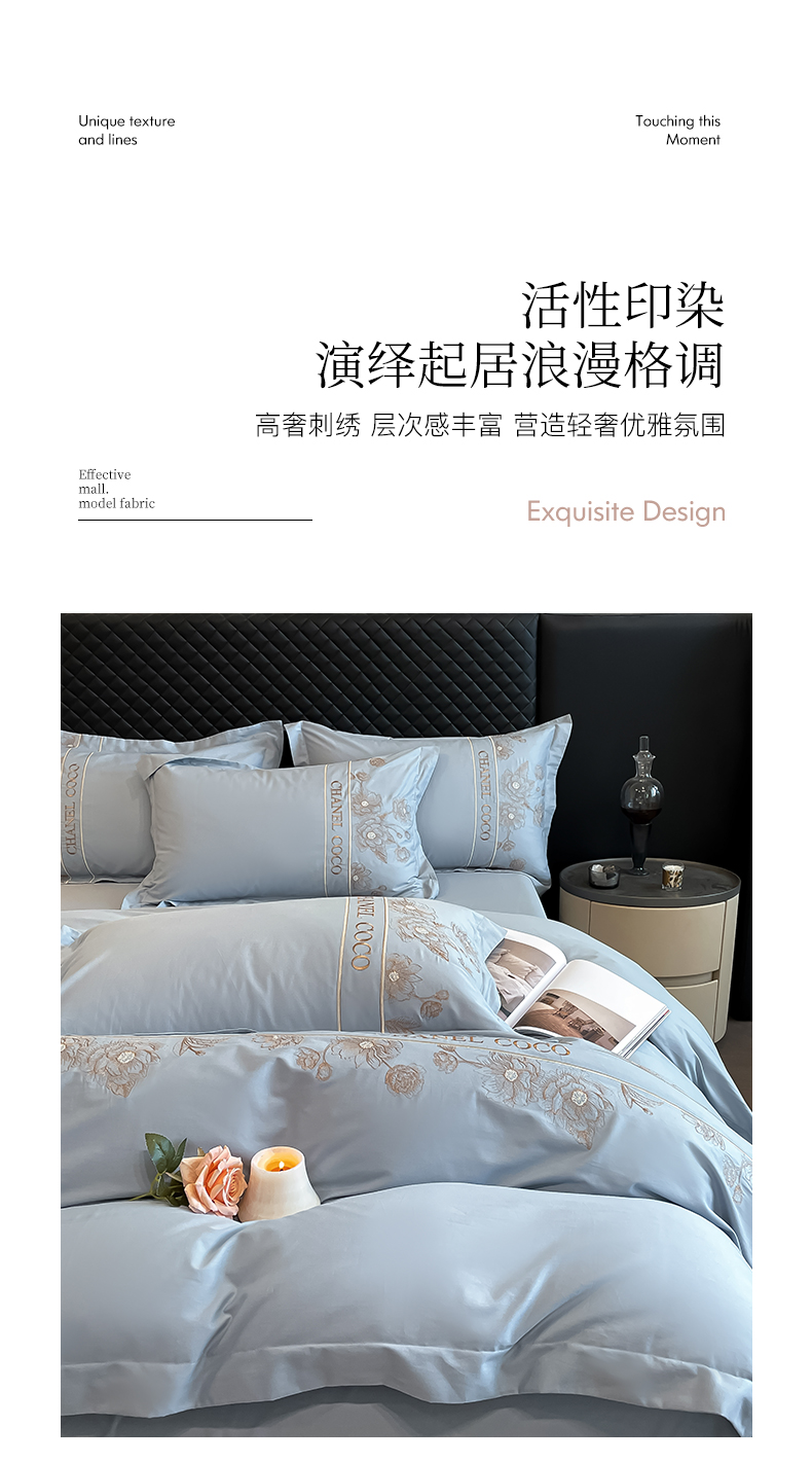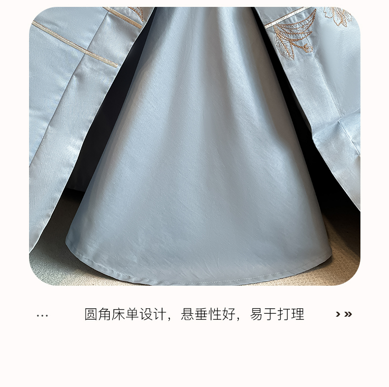 商品名称:理想家家纺 2024新款13372全棉刺绣四件套系列-花季 蓝