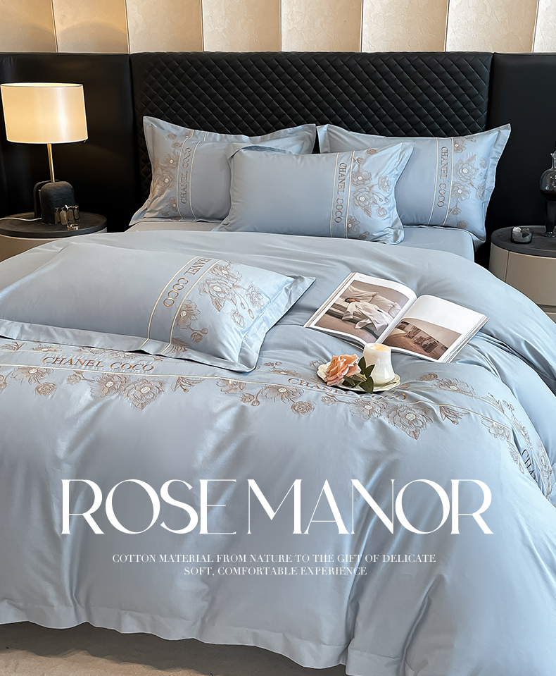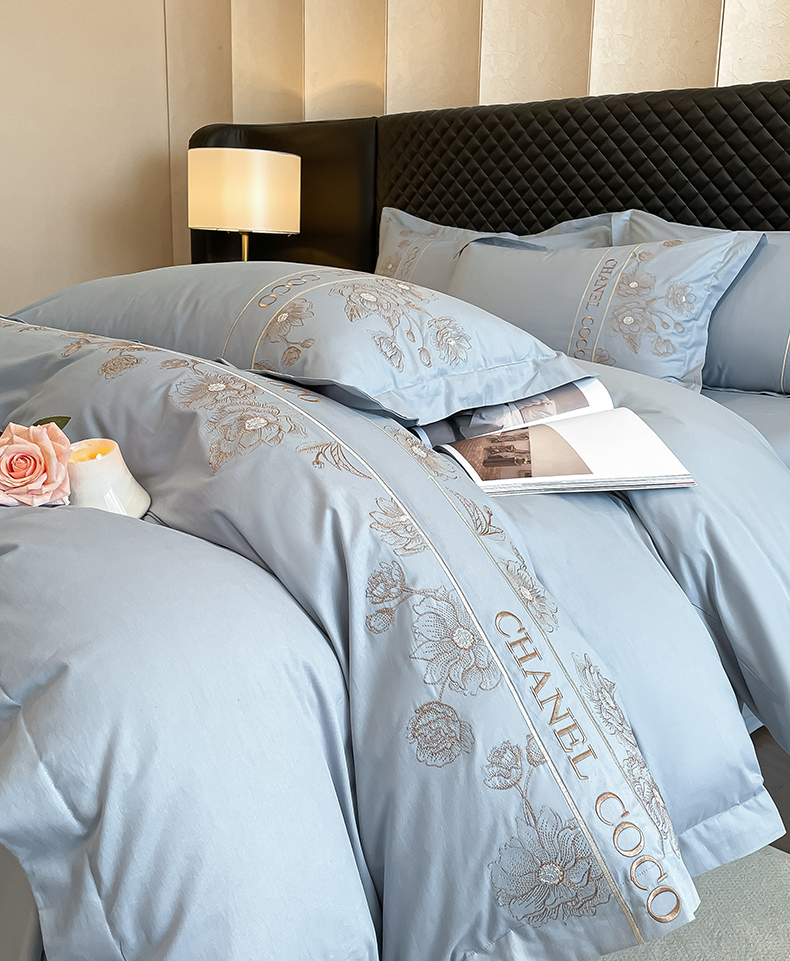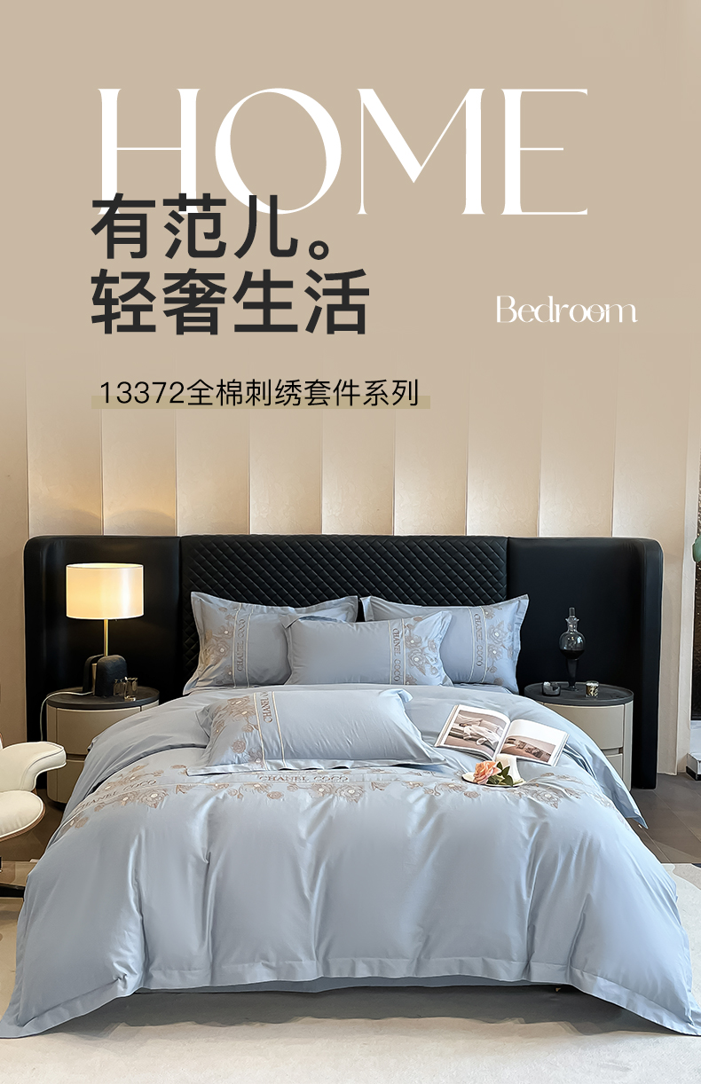理想家家纺 2024新款13372全棉刺绣四件套系列-花季 蓝