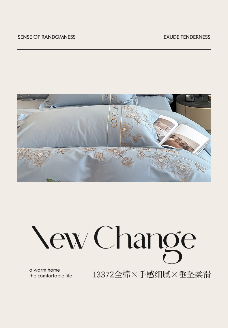 (总)理想家家纺 2025新款纯棉轻奢刺绣四件套--心愿系列场景二,心愿粉,心愿红,心愿黄,心愿蓝