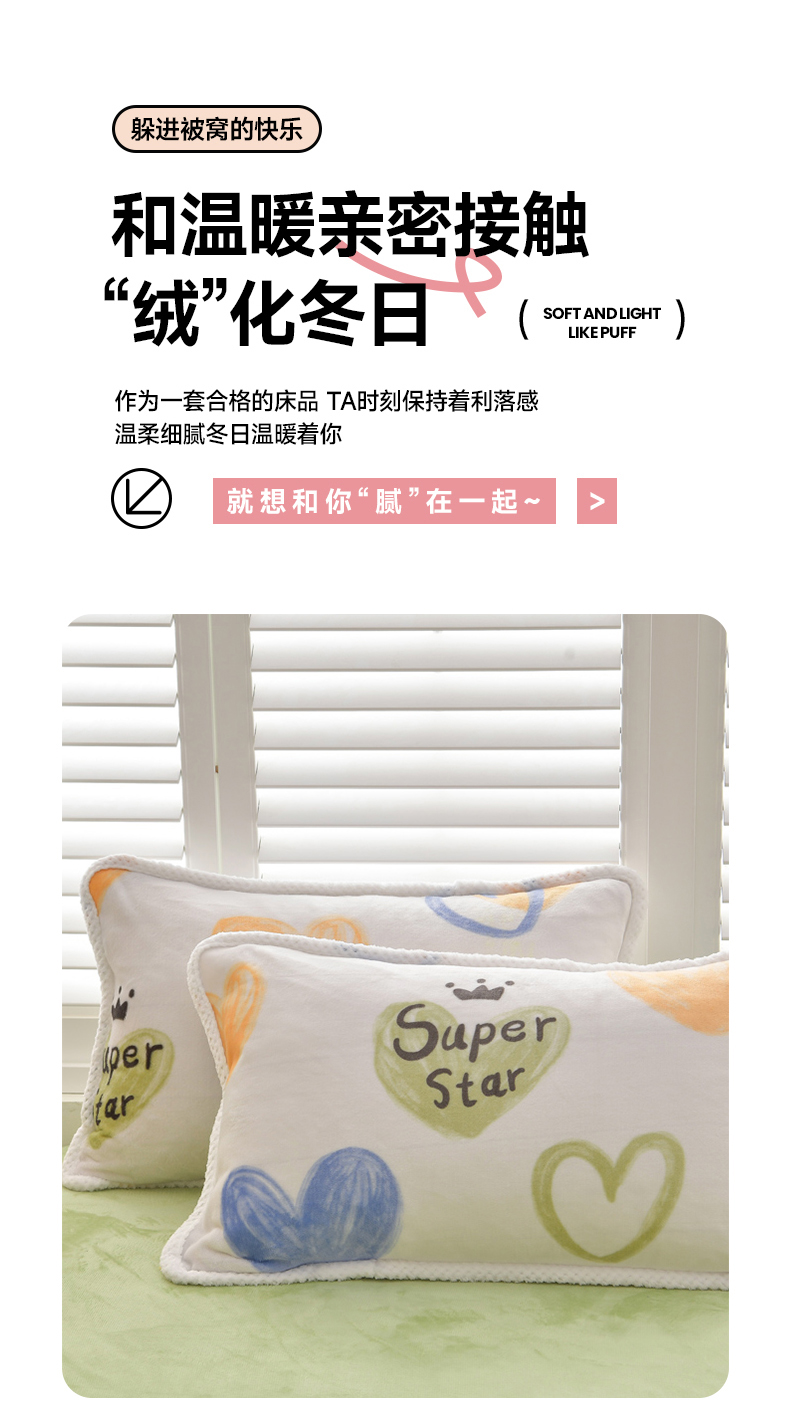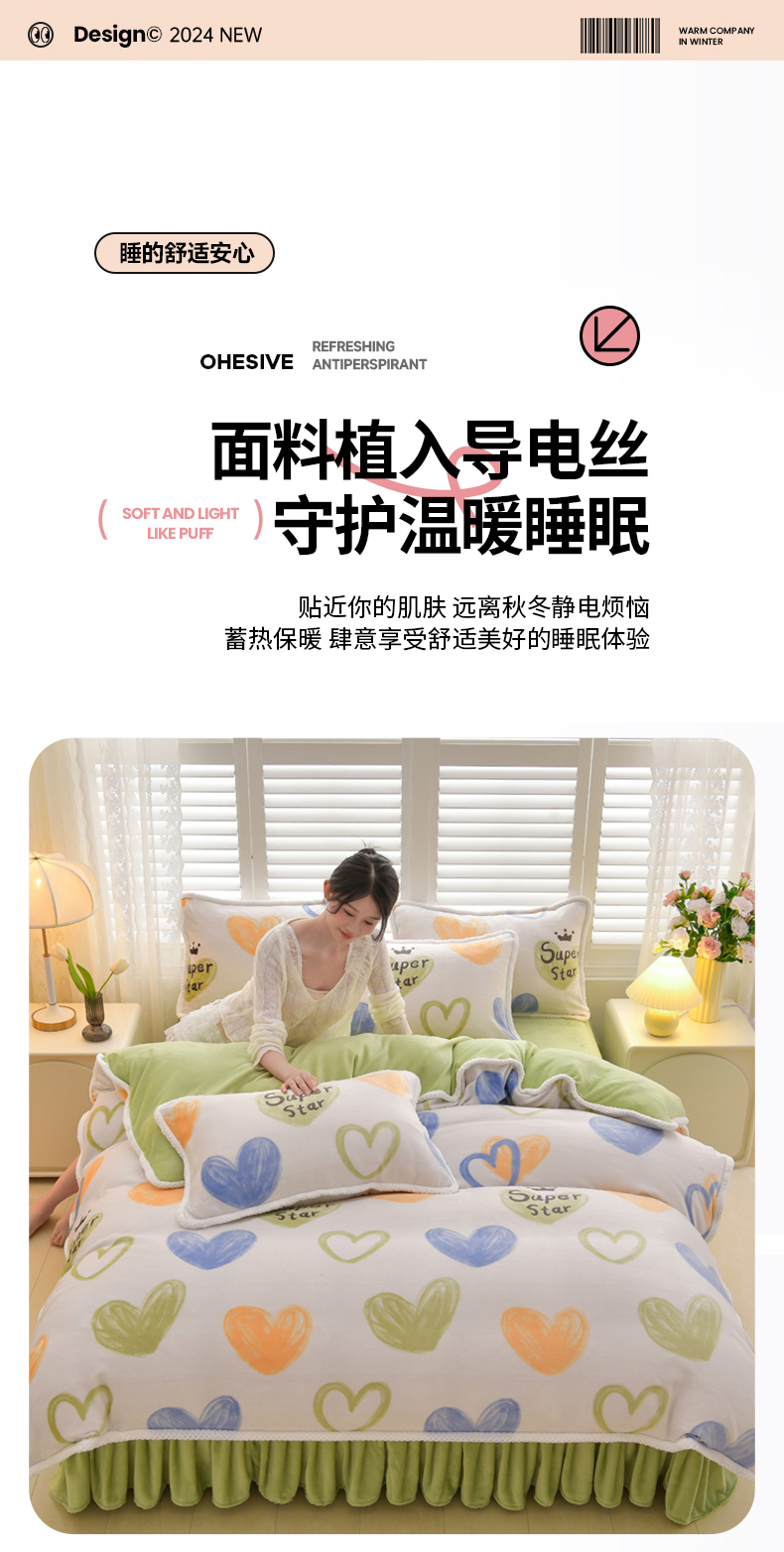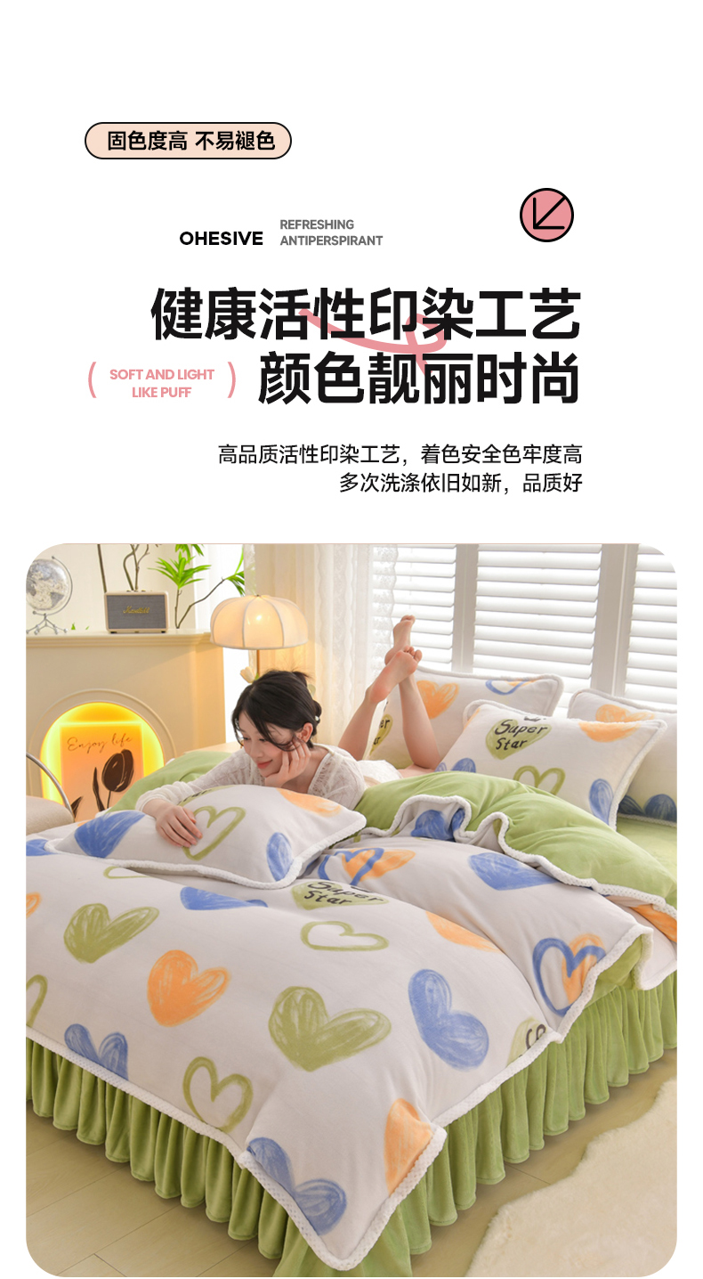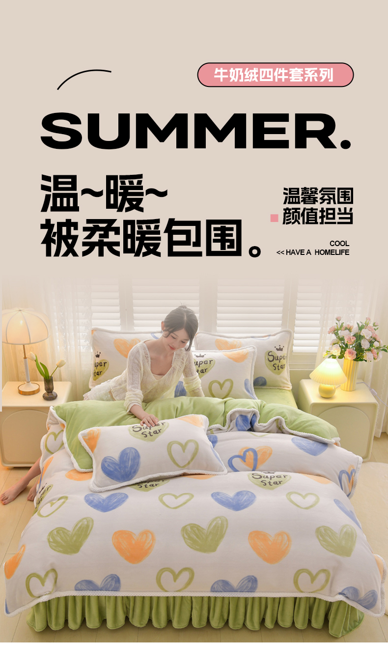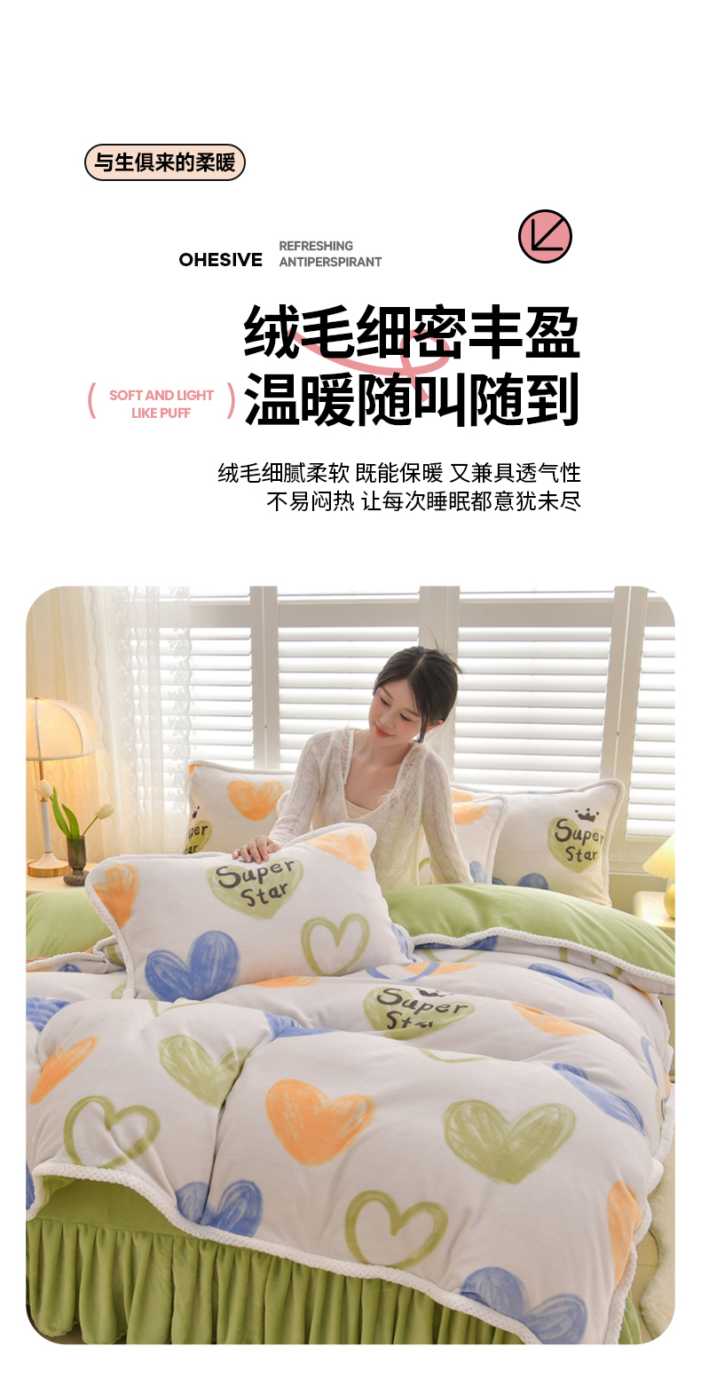商品名称:绒耀 2025新款高克重牛奶绒四件套保暖四件套直播爆款电商爆款 怦然心动