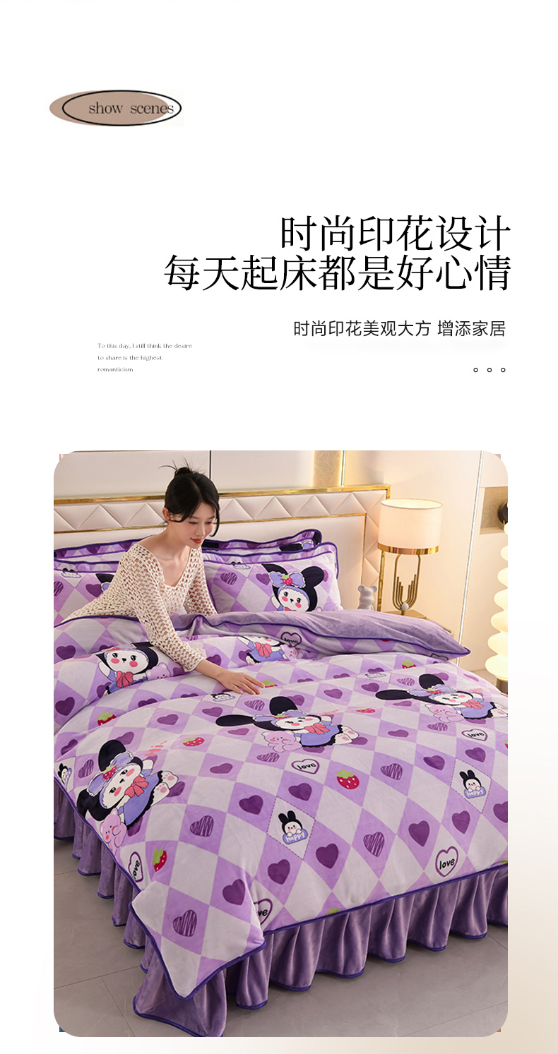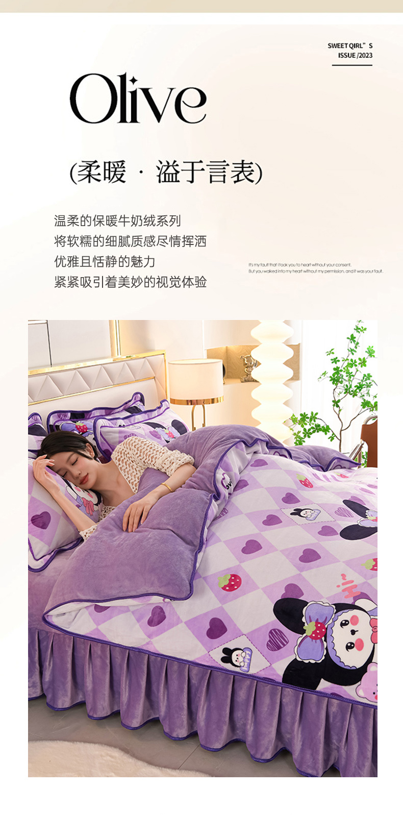 (总)绒耀 2025新款菠萝格牛奶绒四件套,哈喽小黑,多金,甜蜜乐园,怦然心动,胖嘟嘟,顽皮熊,快乐萌龙,小奶牛,酷米宝贝,花田故事,心有灵犀,嗨皮狗,熊先生,水蜜桃,秘密花园,彩虹兔,元气小熊,啦啦队,花香蝶舞