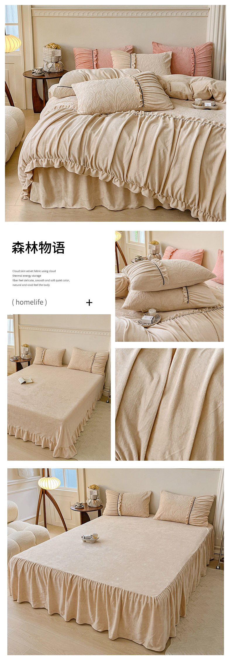 当前位置: 91家纺网 > 商品网购 > 床品套件 > 四件套 > 牛奶绒四件套 > 恩和家纺 2024新款牛奶绒雕花绒木耳飞边款四件套 森林物语