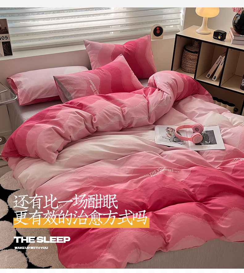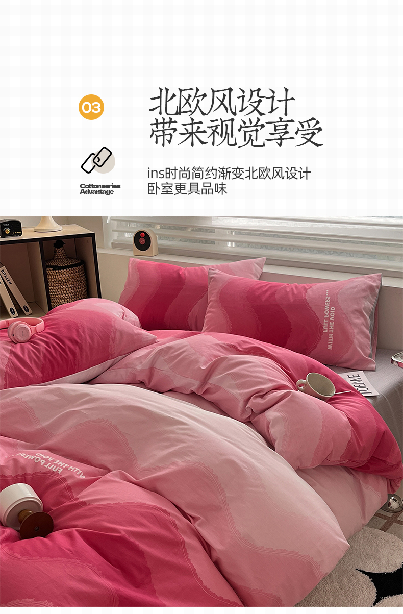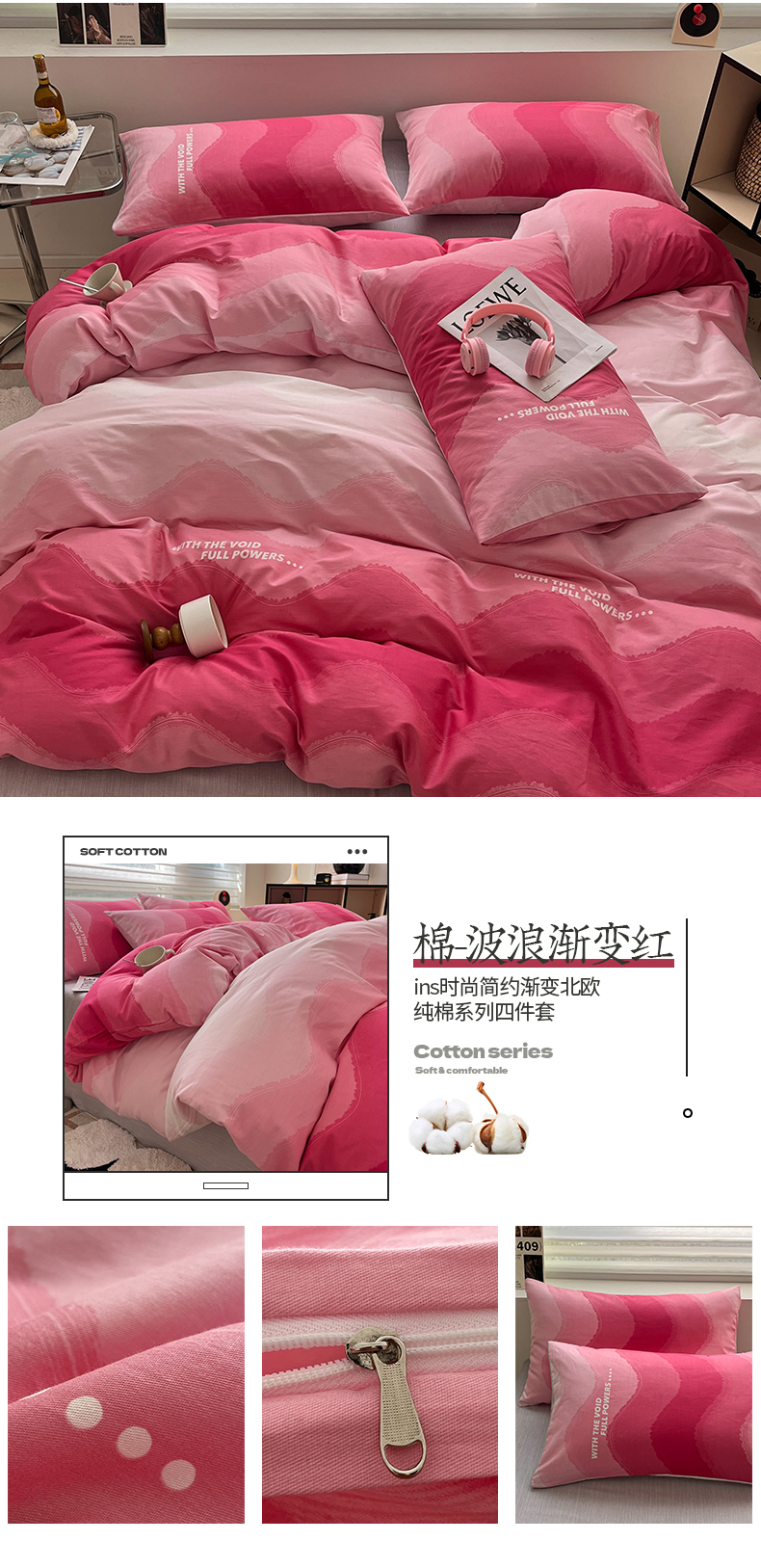 商品名称:2024新款ins时尚简约渐变北欧全棉系列四件套 棉-波浪渐变红