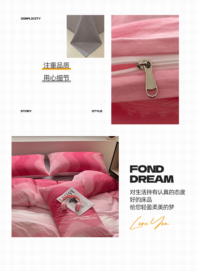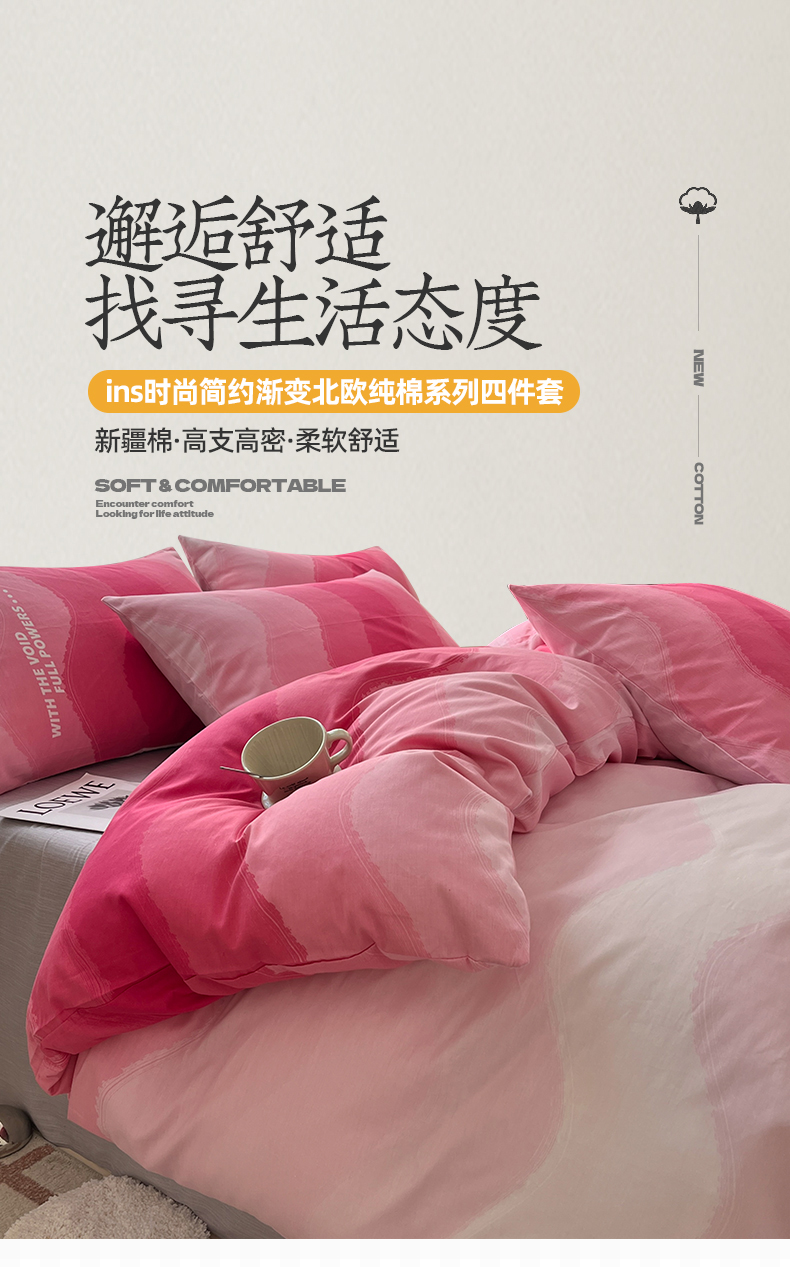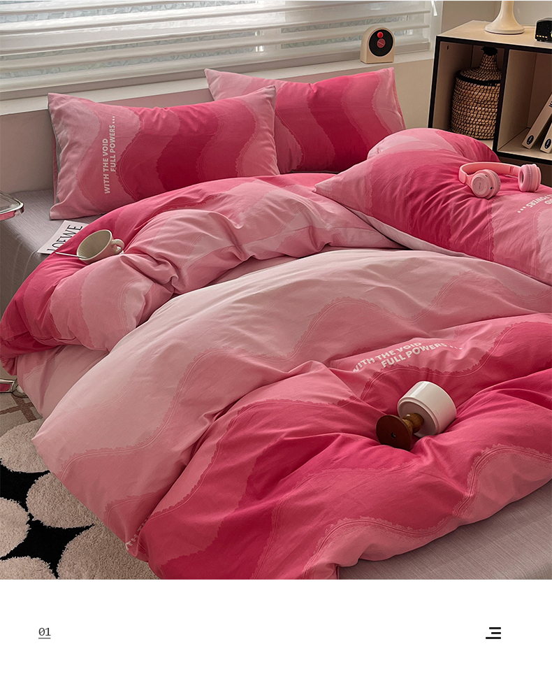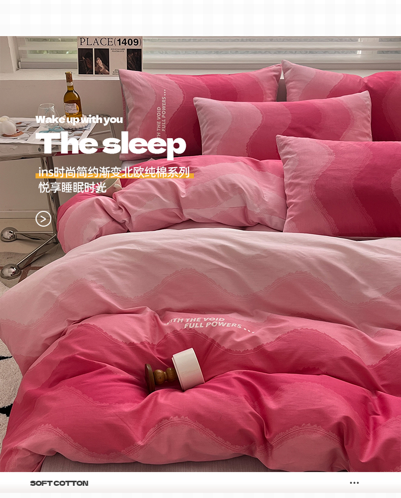 商品名称:2024新款ins时尚简约渐变北欧全棉系列四件套 棉-波浪渐变红