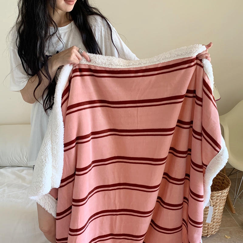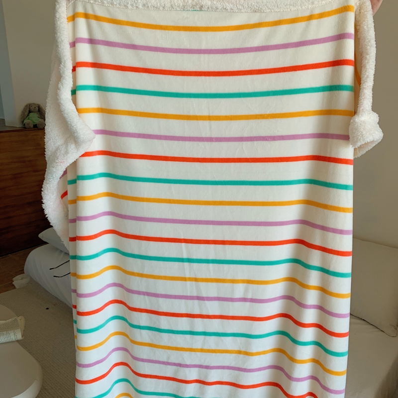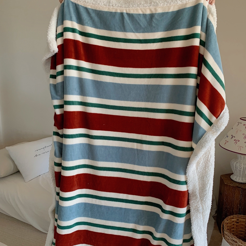(总)桃喜 2024新款牛奶绒羊羔绒条纹系列盖绒毛毯午休毯多功能毛毯-场景二,多巴胺彩条,蓝咖条纹,栗子粉条纹,美式复古红蓝条,美式复古黄蓝条