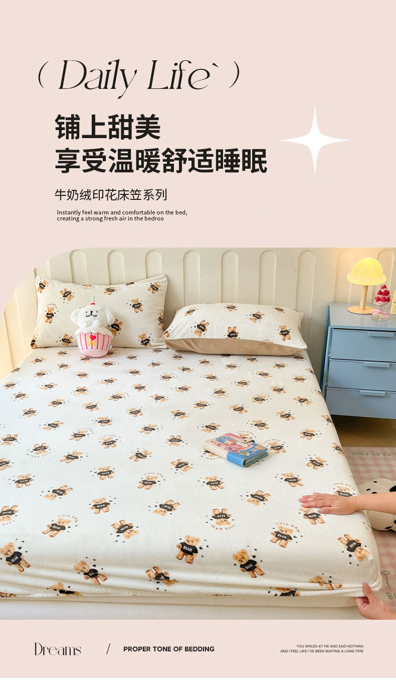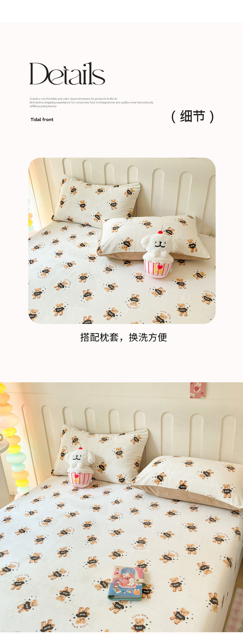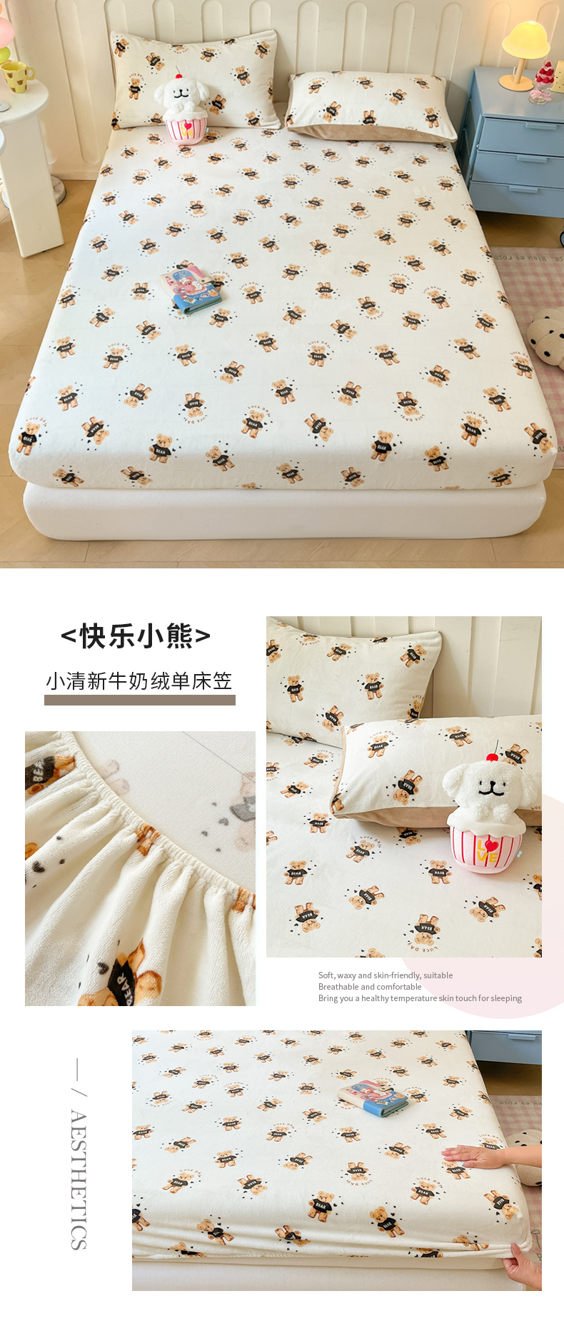 商品名称:星座家纺 2025新款小清新牛奶绒单床笠 快乐小熊