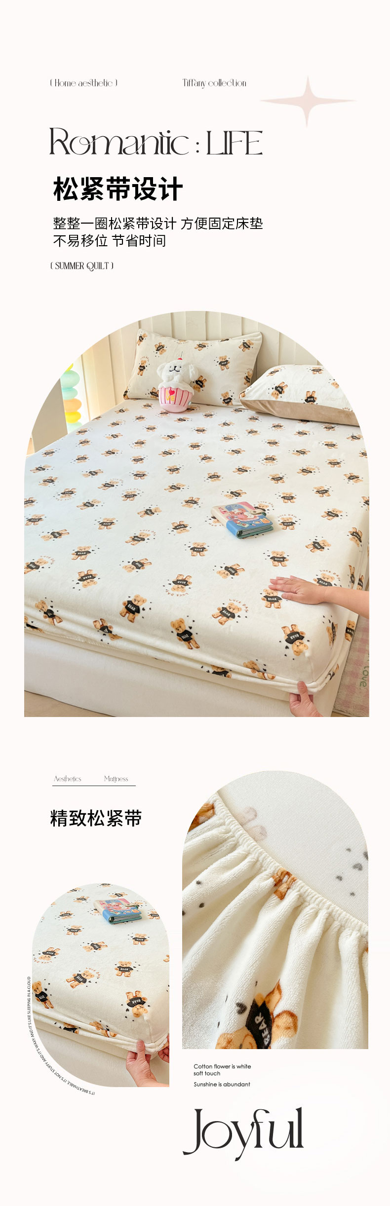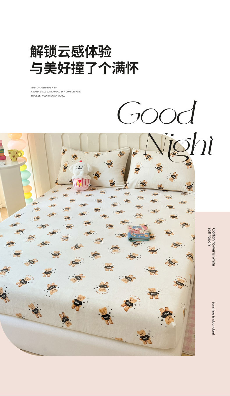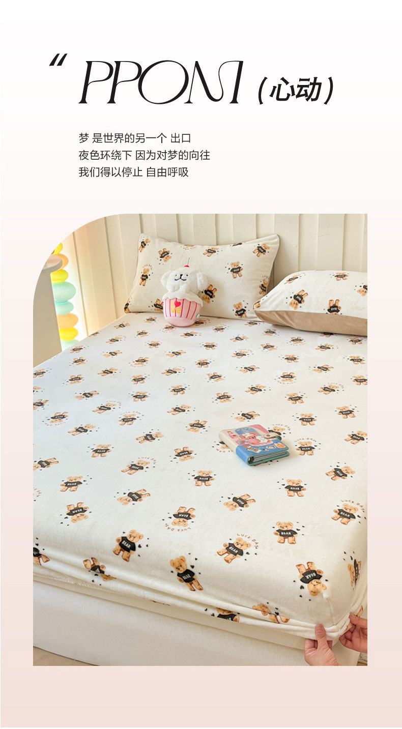 商品名称:星座家纺 2025新款小清新牛奶绒单床笠 快乐小熊