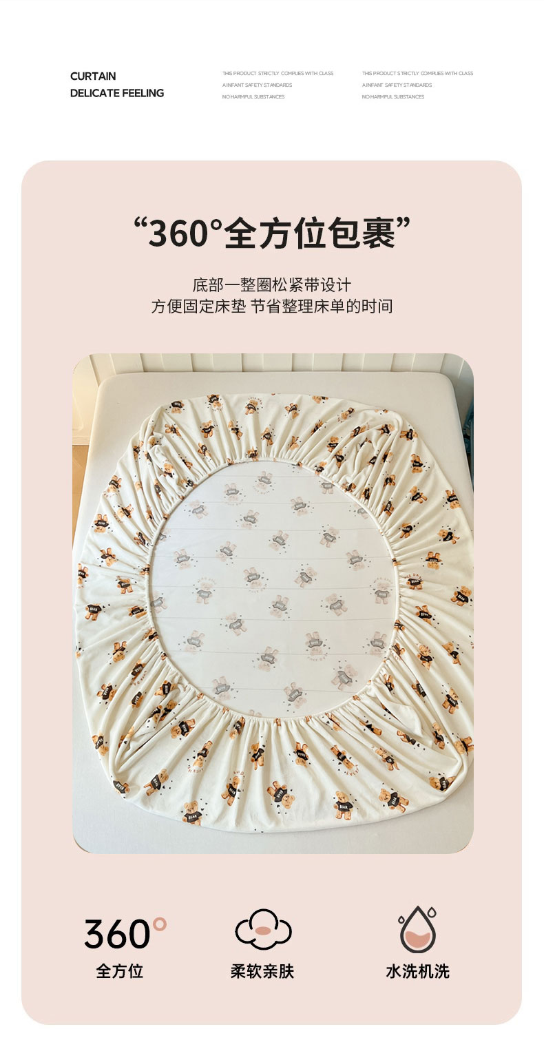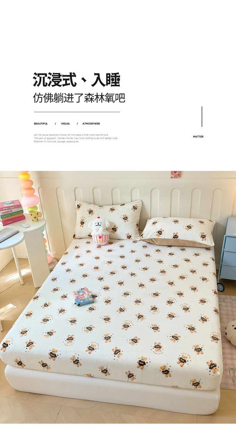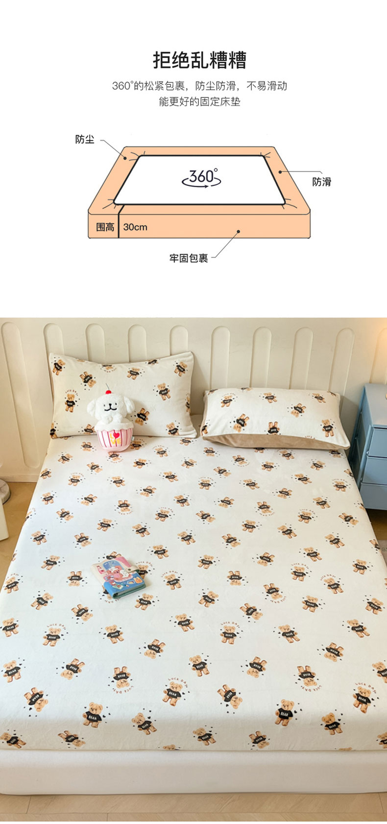 星座家纺 2025新款小清新牛奶绒单床笠 快乐小熊