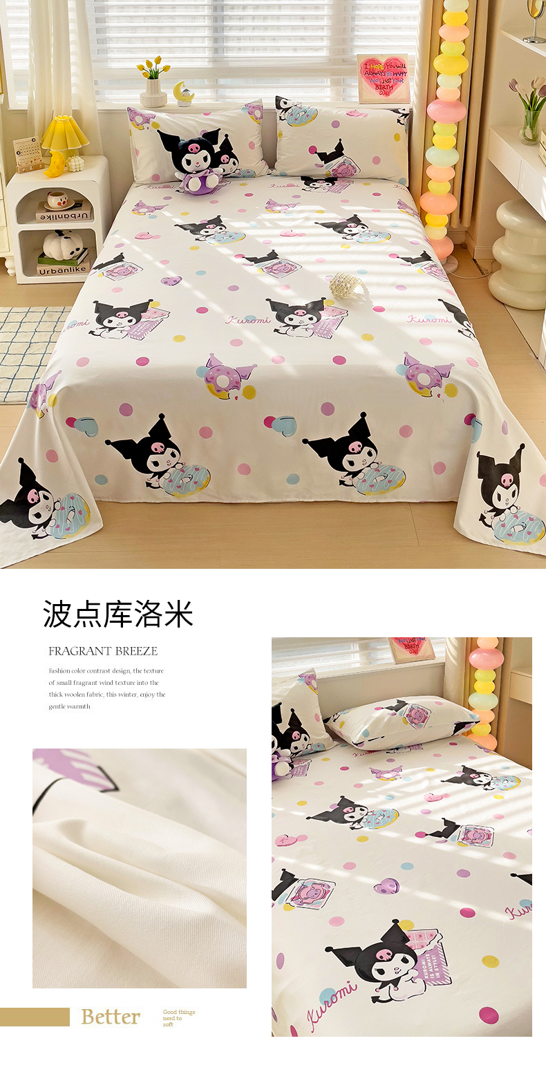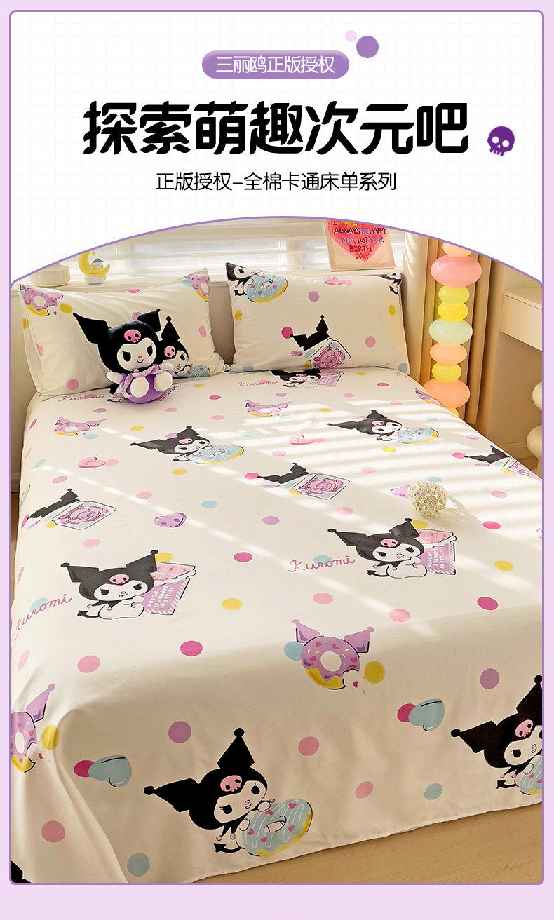 名兮家居 2024新款正版授权经典奥特曼-三丽鸥全棉床单【含防伪标】 波点库洛米