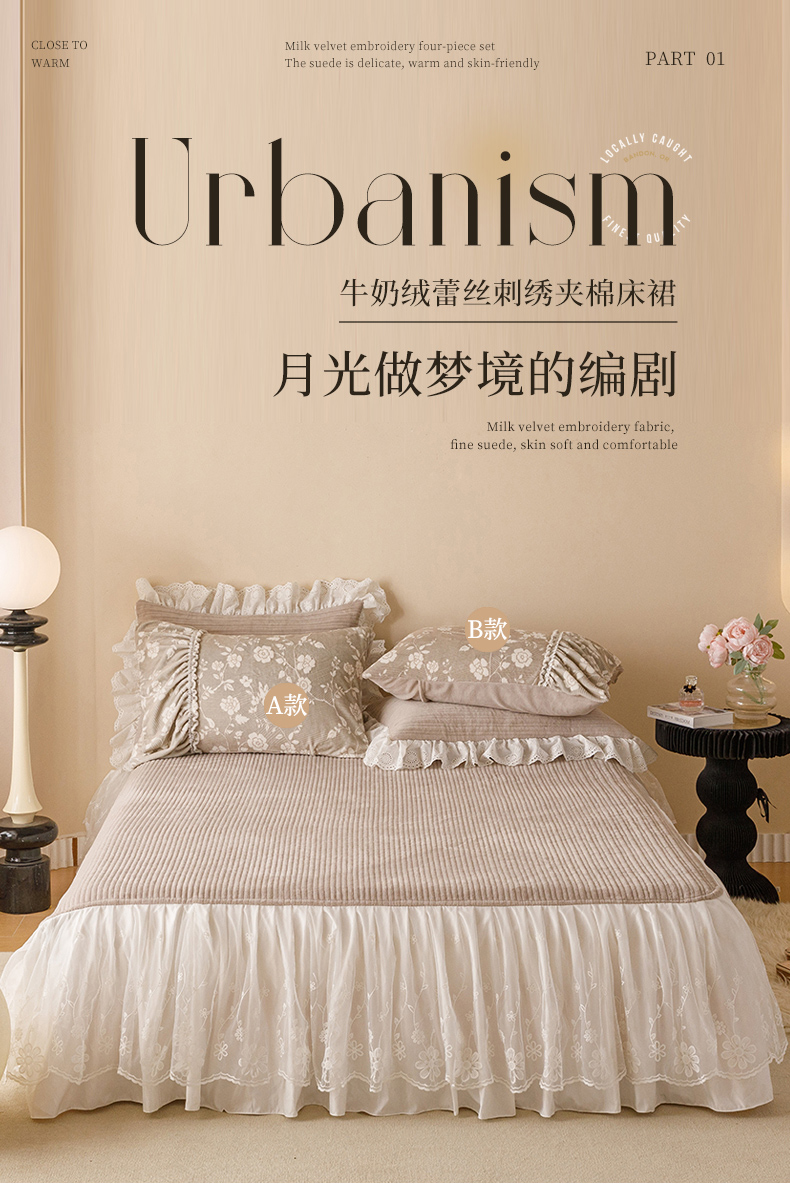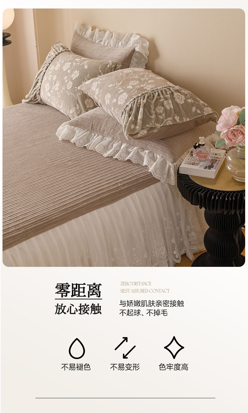 商品名称:2024新款5D雕花着色牛奶绒法式奶油风单床裙-安妮系列 安妮麦咖