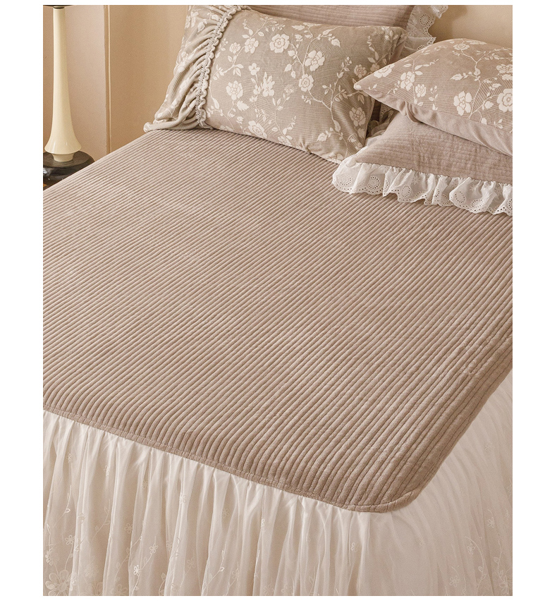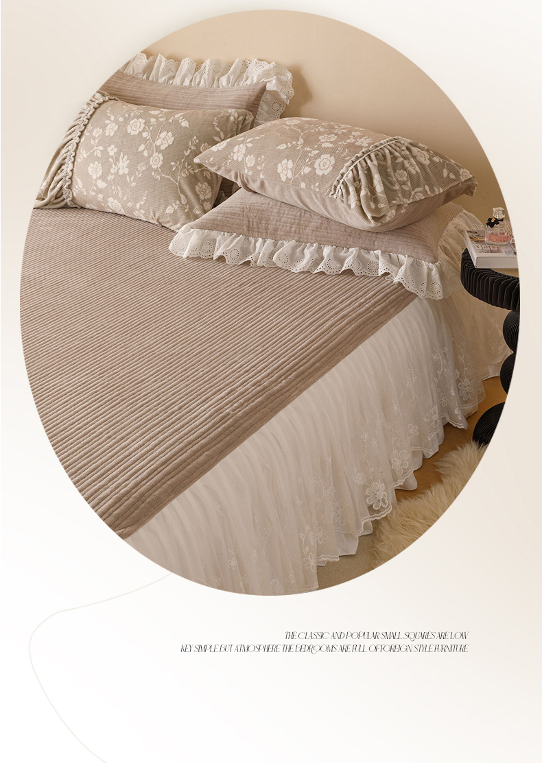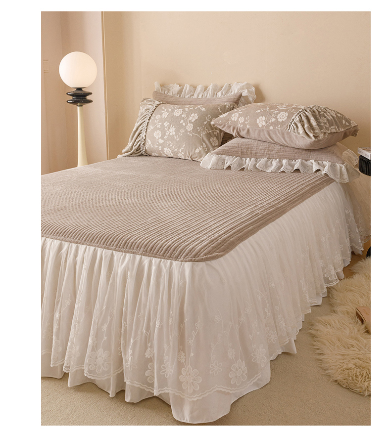 2024新款5D雕花着色牛奶绒法式奶油风单床裙-安妮系列 安妮麦咖