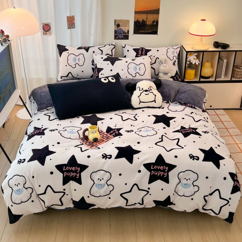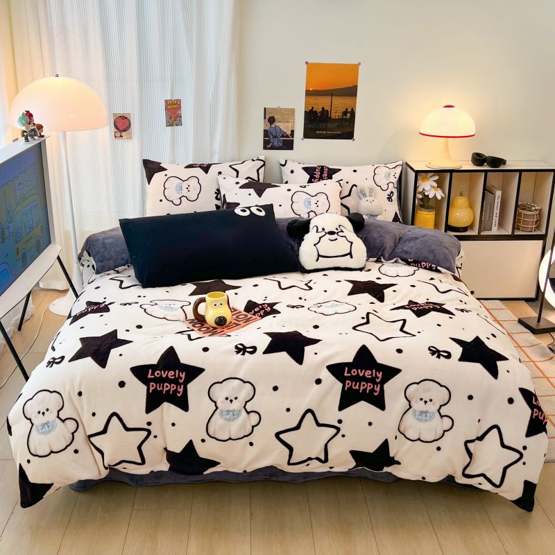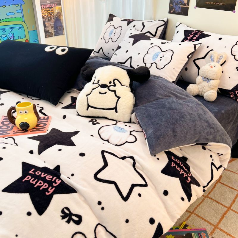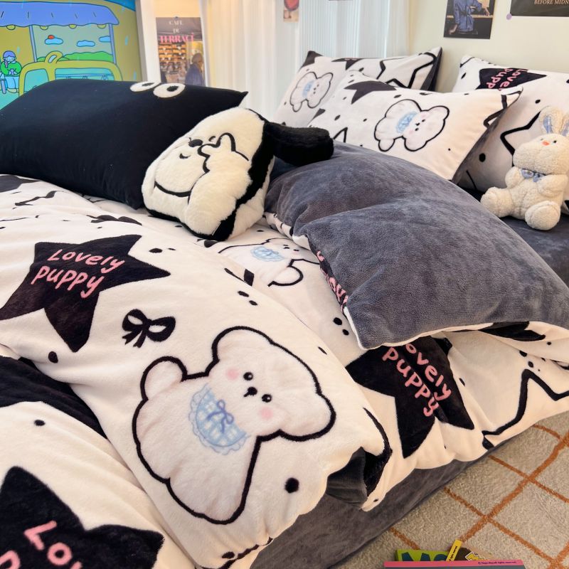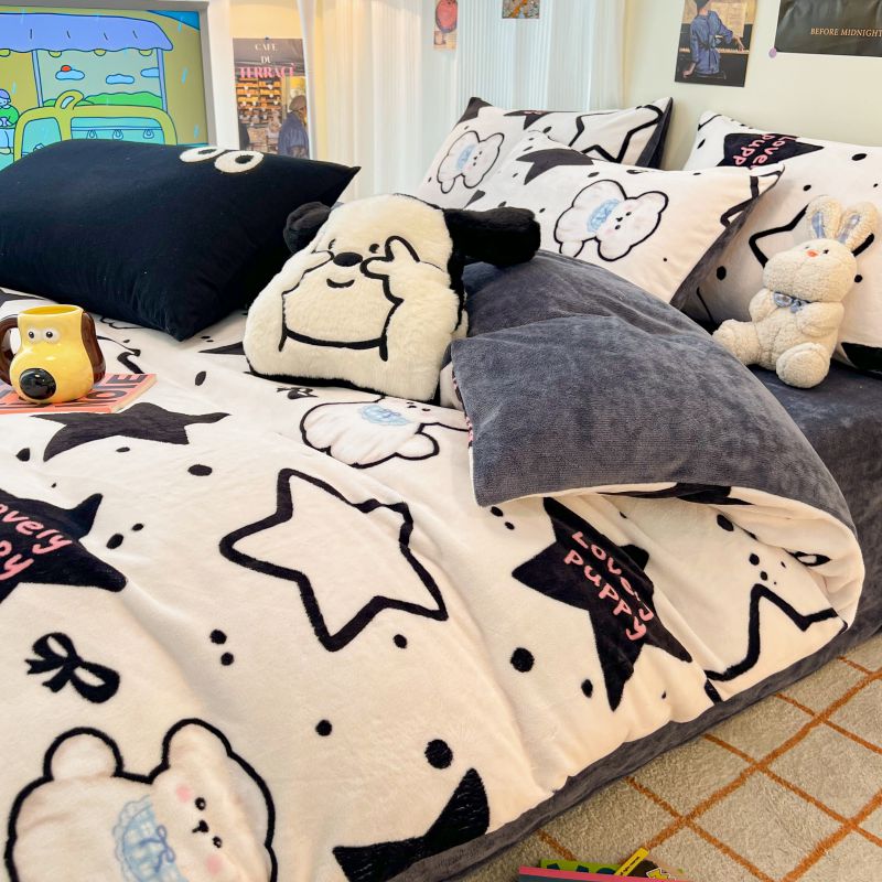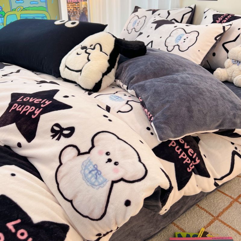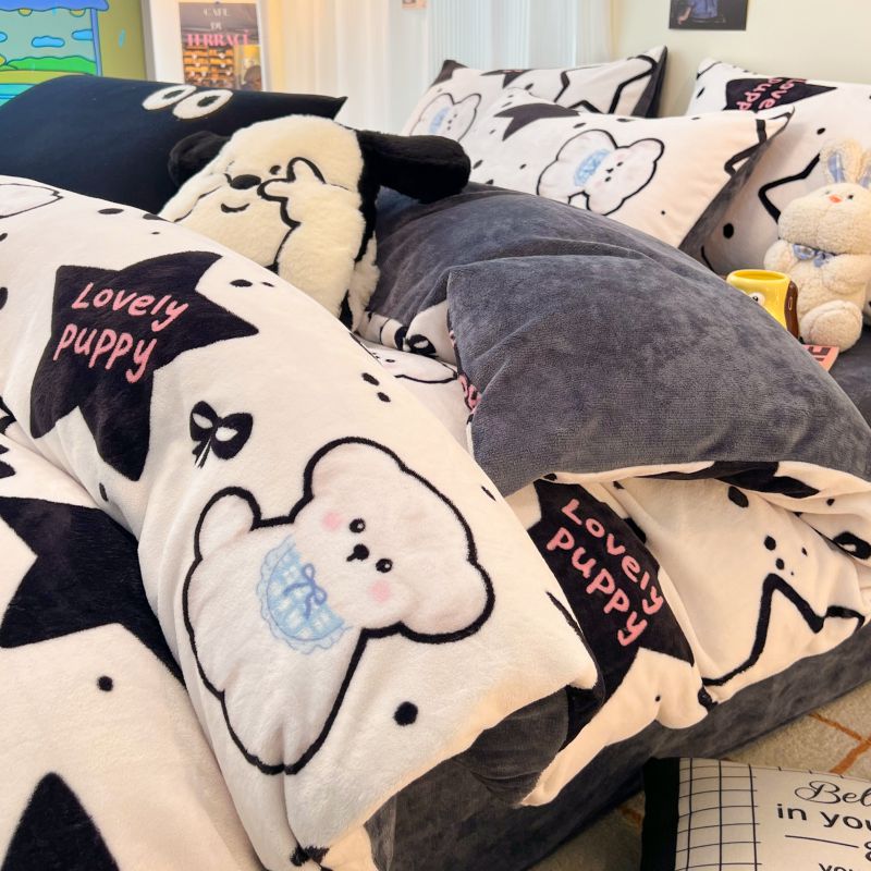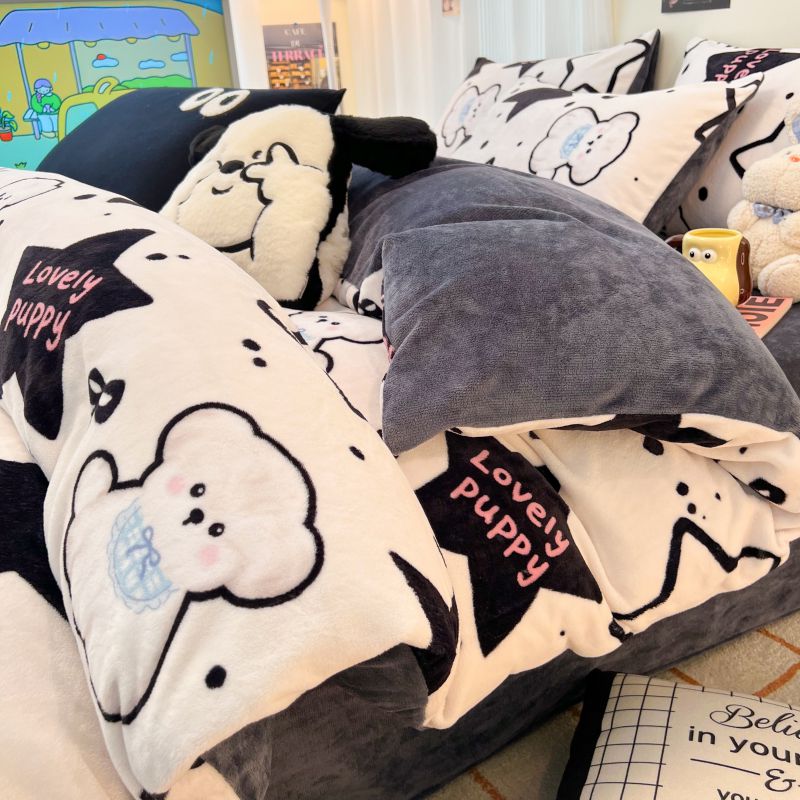商品名称:2024新款原创白色小清新场景牛奶绒单被套 幸运狗