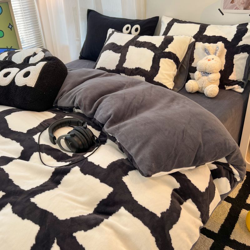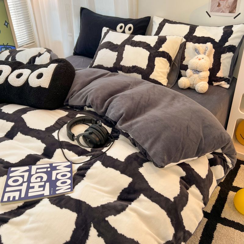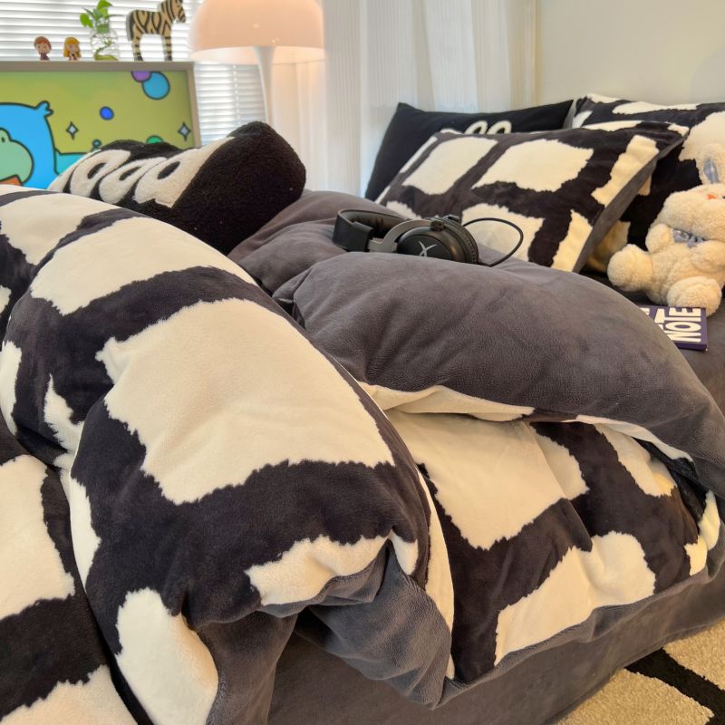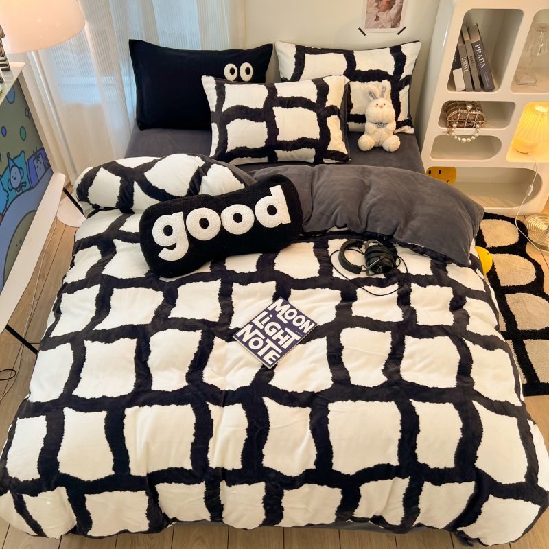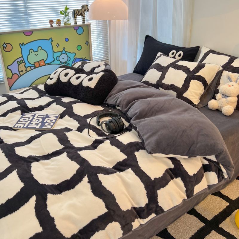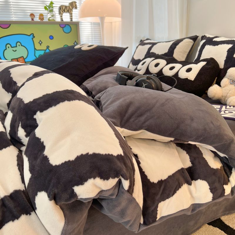 2024新款原创白色小清新场景牛奶绒单被套 黑白格调