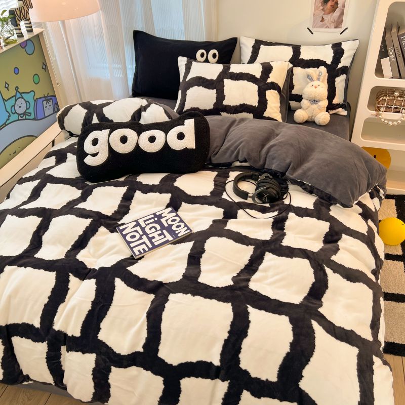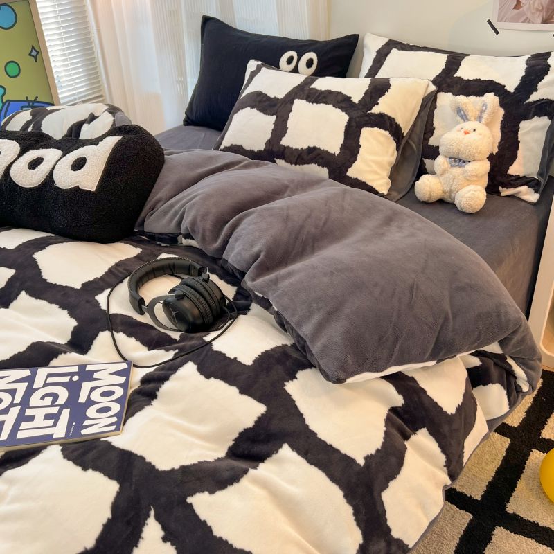 商品名称:2024新款原创白色小清新场景牛奶绒单被套 黑白格调