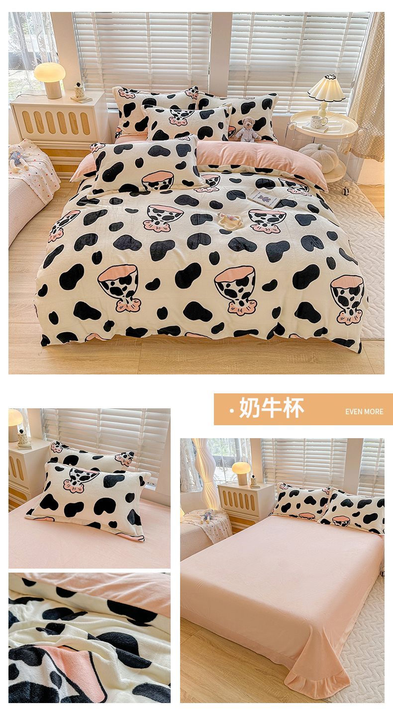 商品名称:卡普家居 2025新款加厚保暖牛奶绒系列--四件套 奶牛杯