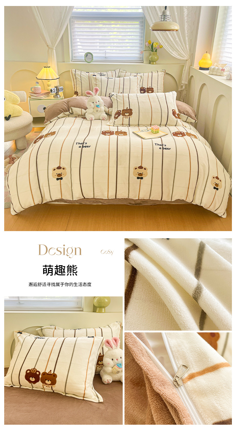 当前位置: 91家纺网 > 商品网购 > 床品套件 > 四件套 > 牛奶绒四件套 > 梦之岛 2024新款高克重小清新印花牛奶绒保暖四件套 萌趣熊