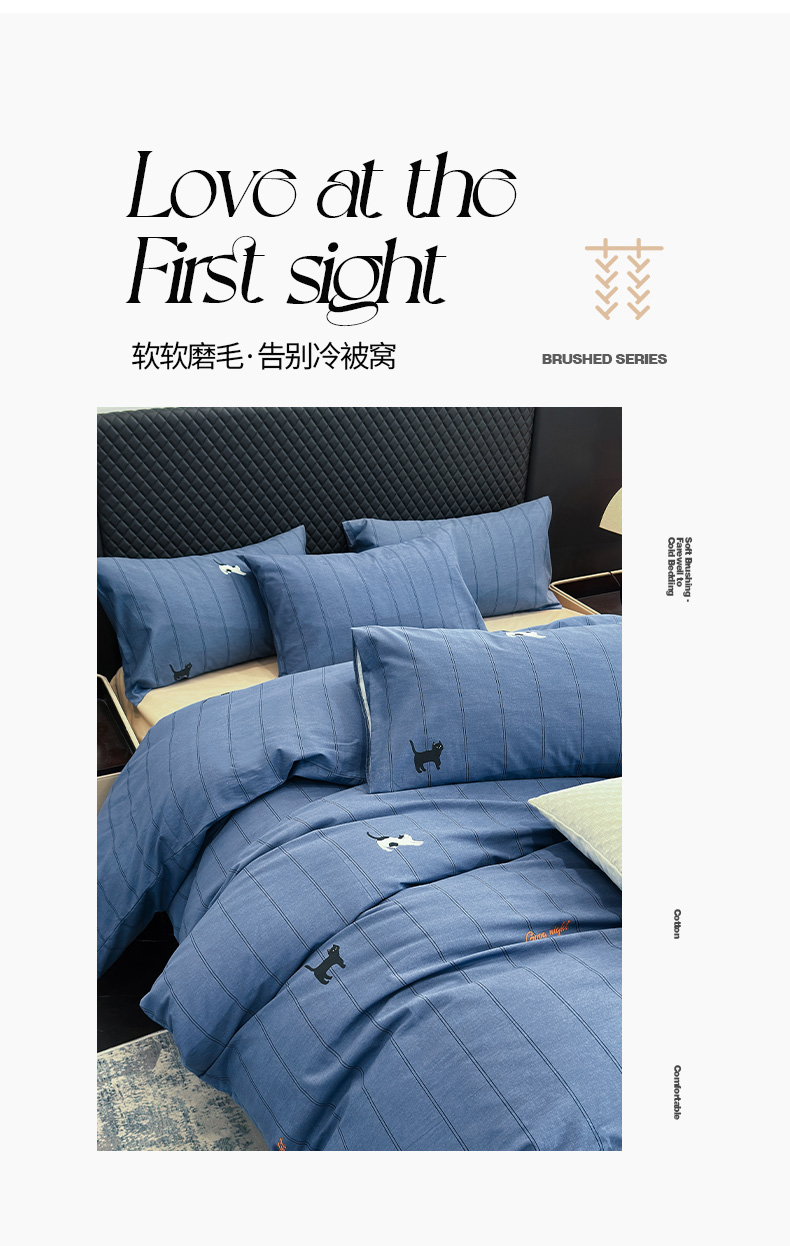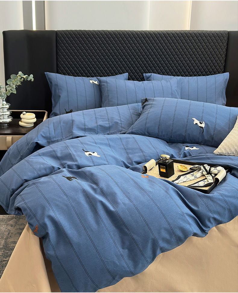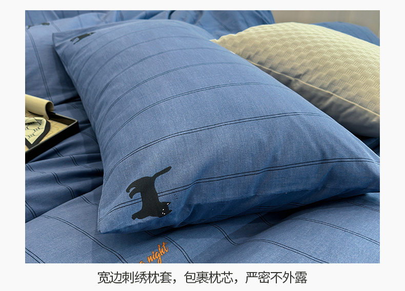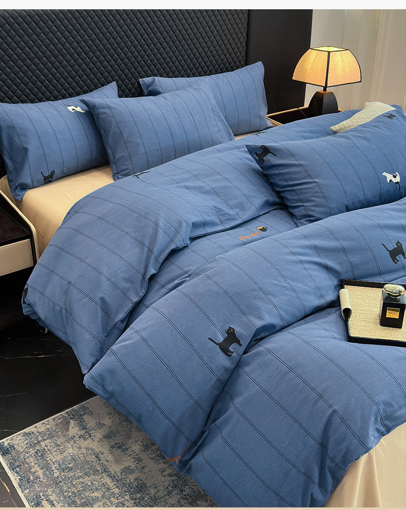 怡家居 2024新款全棉磨毛印花四件套 蓝猫
