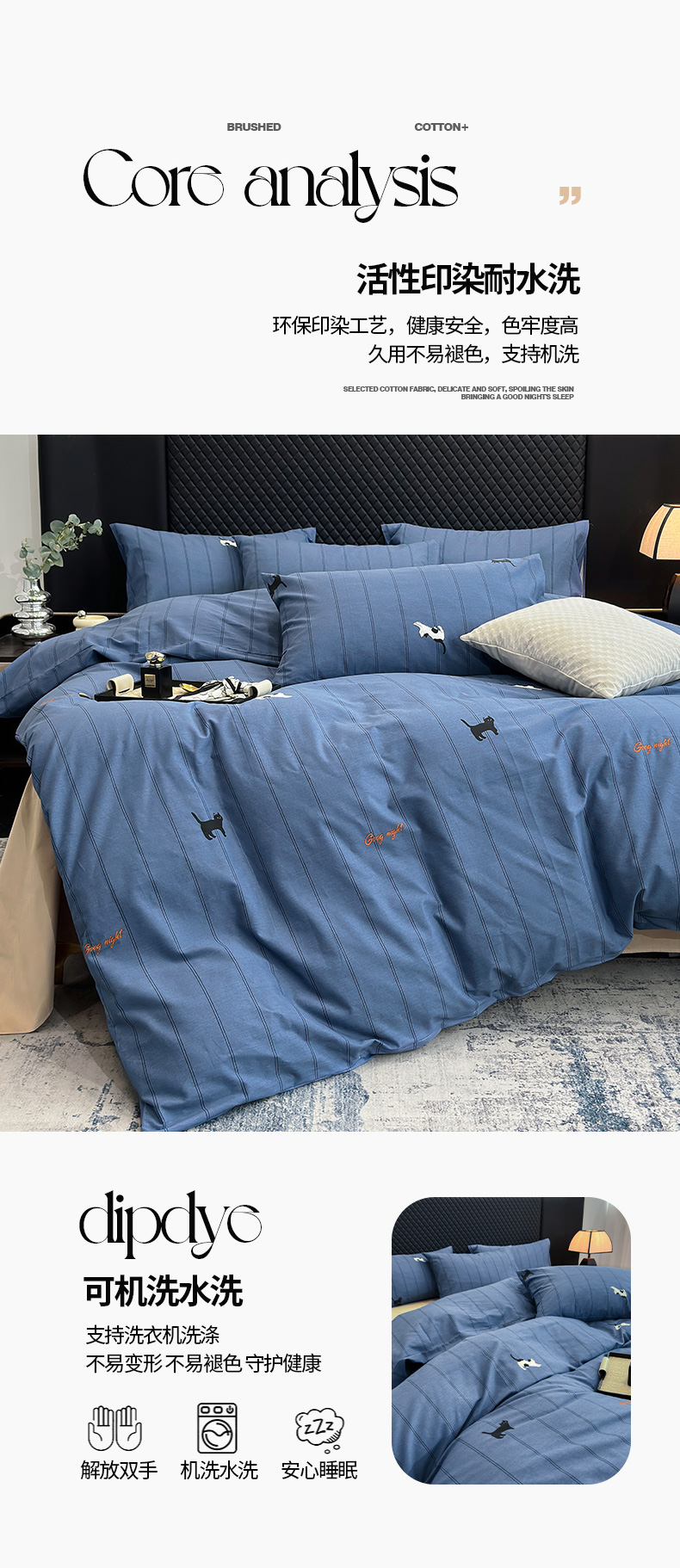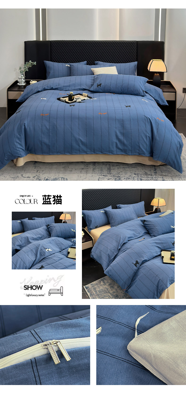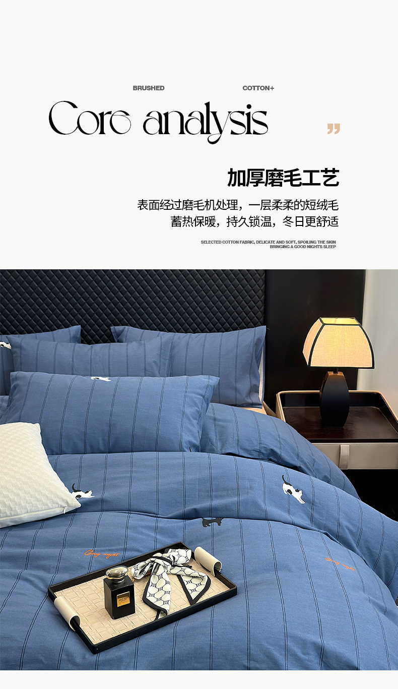 怡家居 2024新款全棉磨毛印花四件套 蓝猫