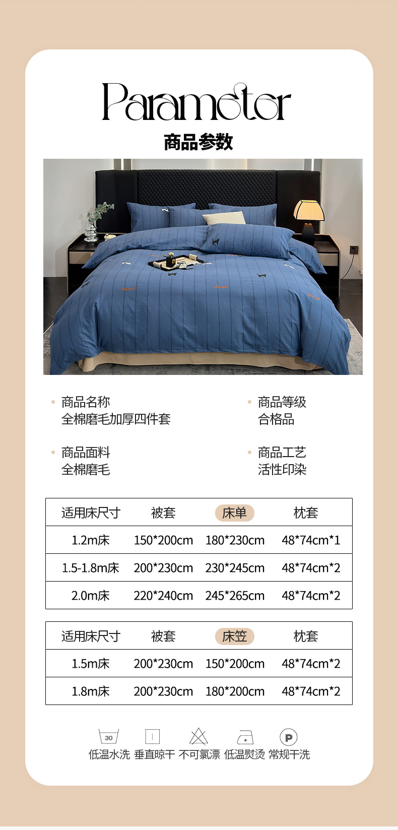 商品名称:怡家居 2024新款全棉磨毛印花四件套 蓝猫
