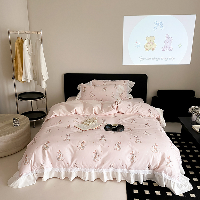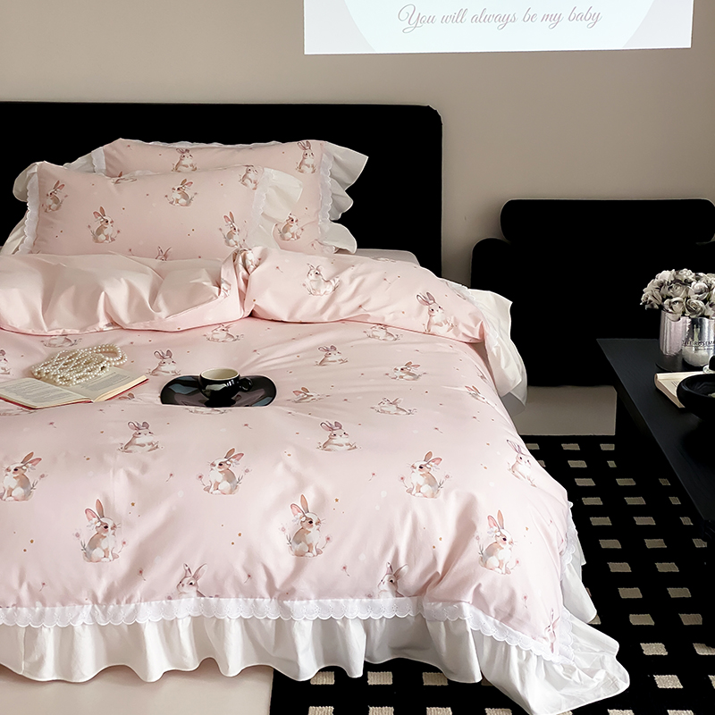 商品名称:2025新款加厚100s全棉磨毛四件套-蓓特兔 蓓特兔-粉