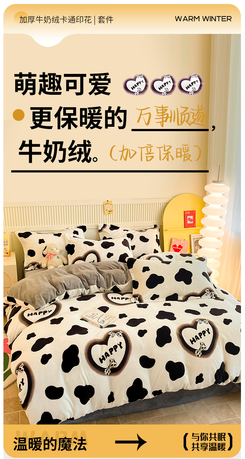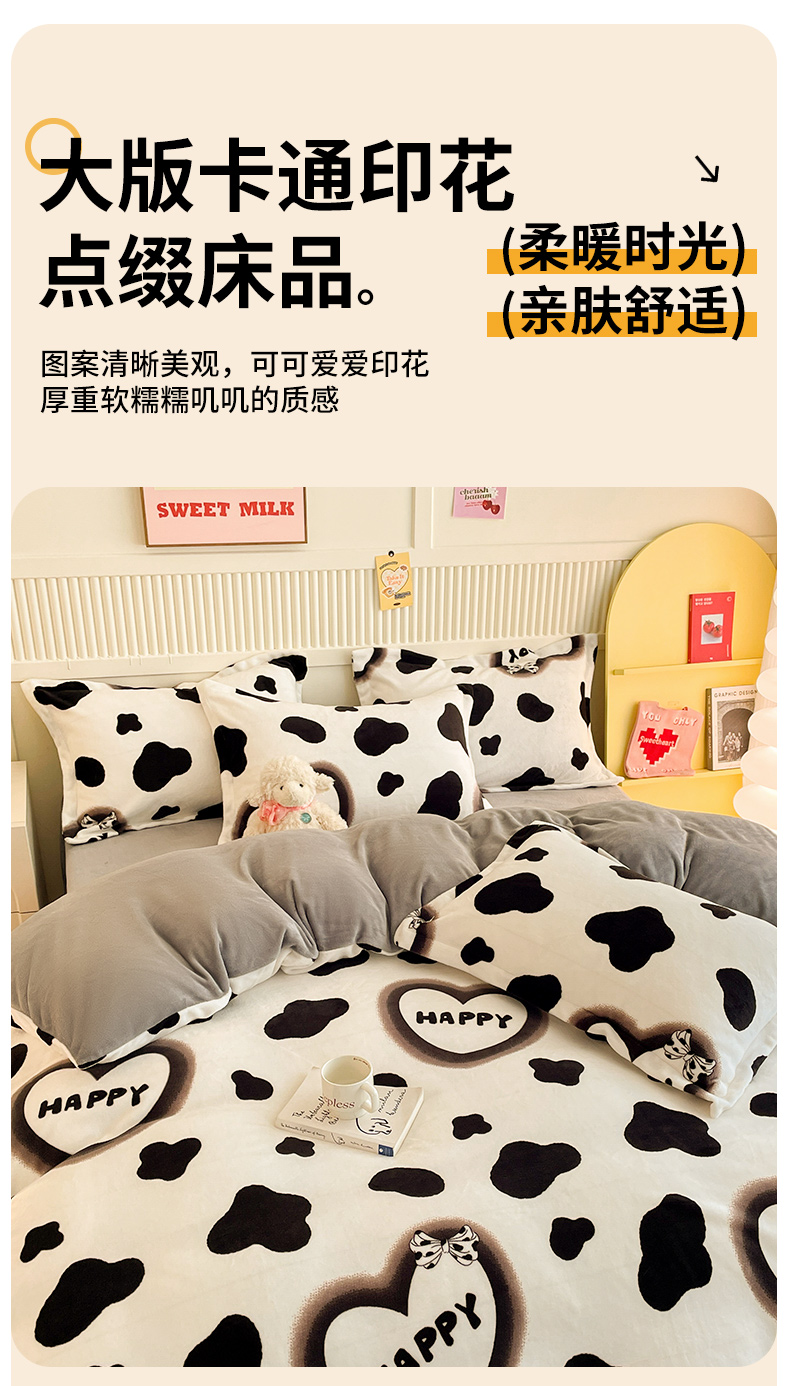 当前位置: 91家纺网 > 商品网购 > 床品套件 > 四件套 > 牛奶绒四件套 > 狂想家 2025新款加厚牛奶绒卡通印花四件套系列风格二 万事顺遂