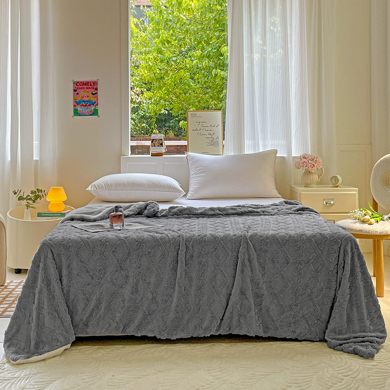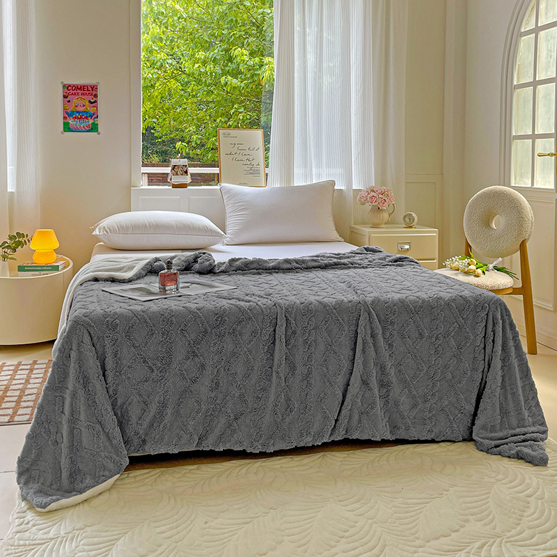亚龙工厂店 2024新款塔芙绒啵啵被盖毯毛毯毯子 灰色