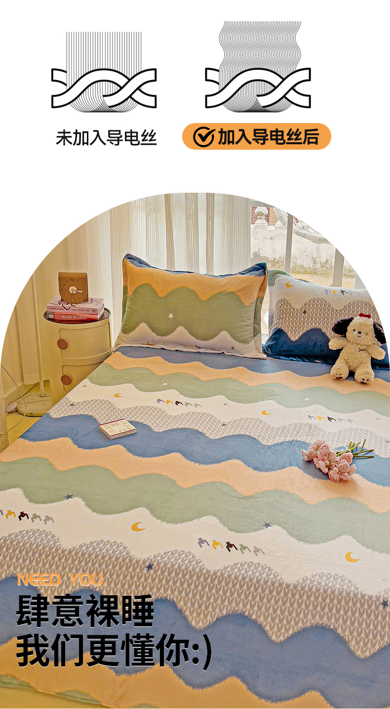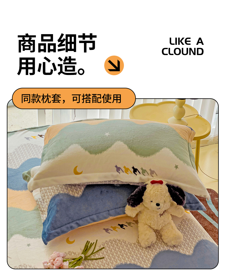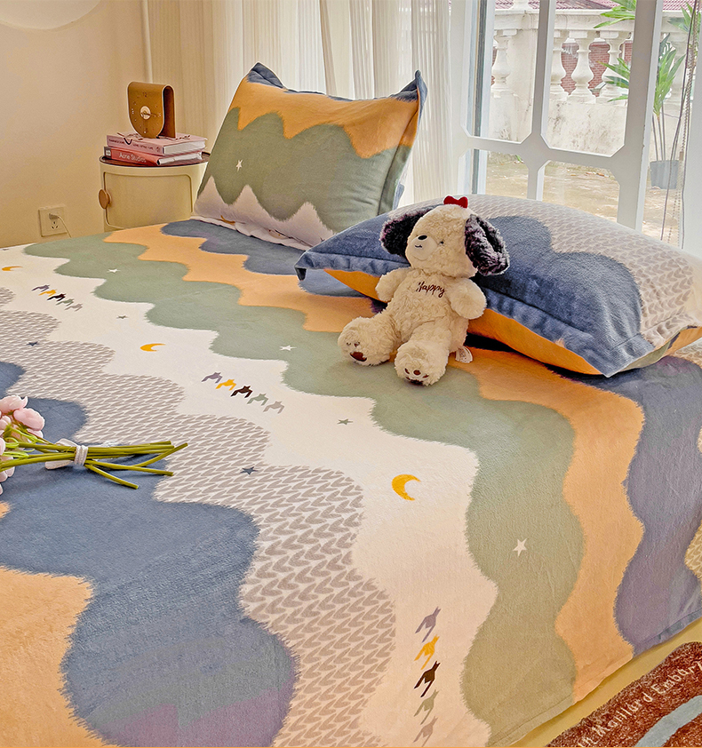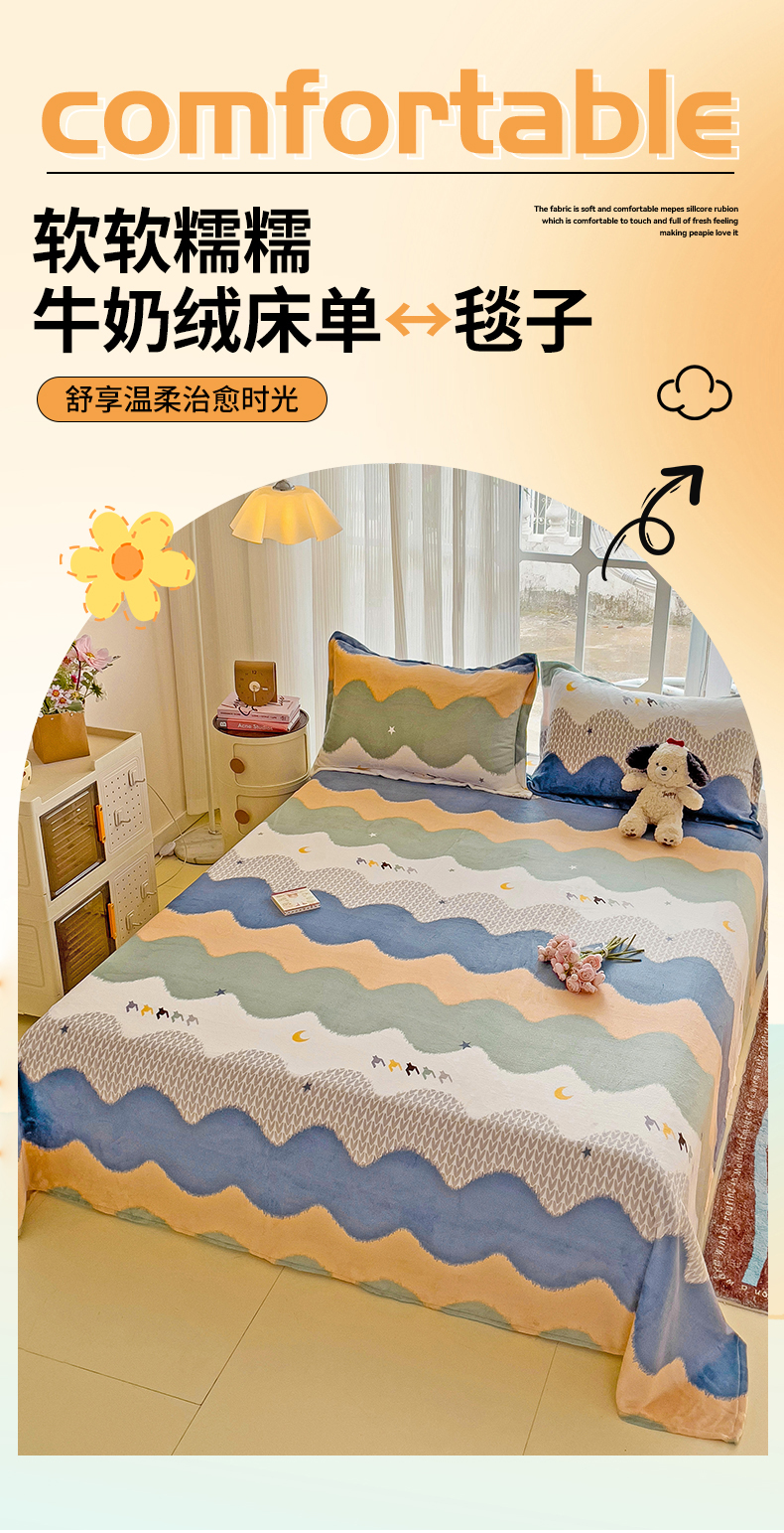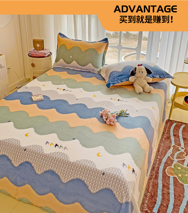 名兮家居 2024新款时尚卡通风高克重牛奶绒床单-盖毯 乘风破浪