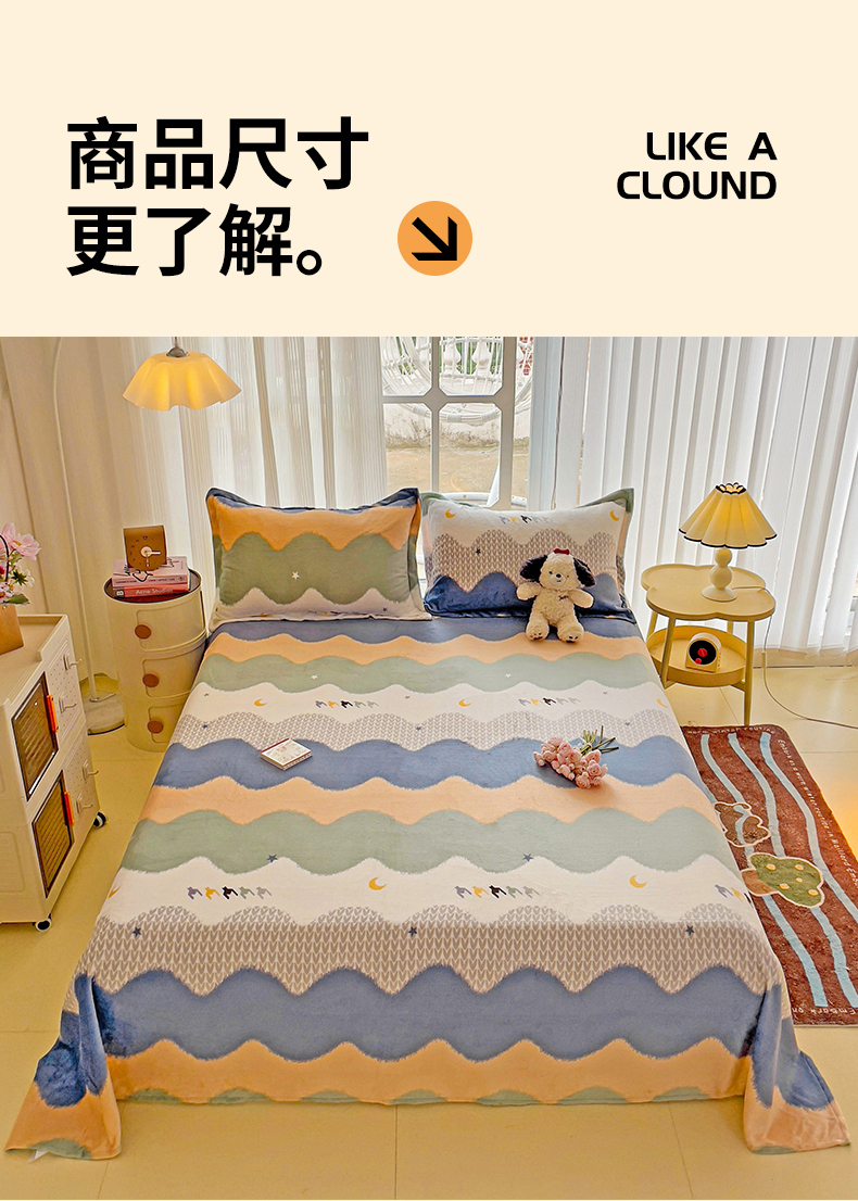 当前位置: 91家纺网 > 商品网购 > 床上用品 > 床单 > 名兮家居 2024新款时尚卡通风高克重牛奶绒床单-盖毯 乘风破浪