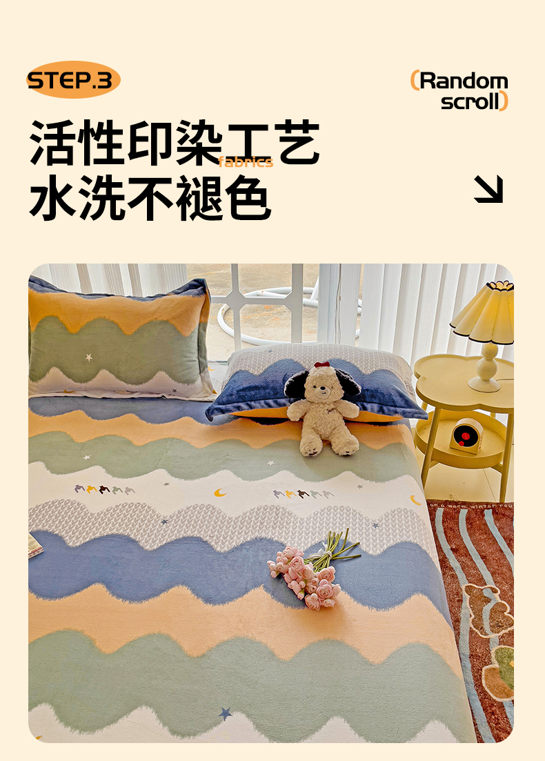 • 91家纺网 家纺一手货源 找家纺 名兮家居 2024新款时尚卡通风高克重牛奶绒床单-盖毯 乘风破浪